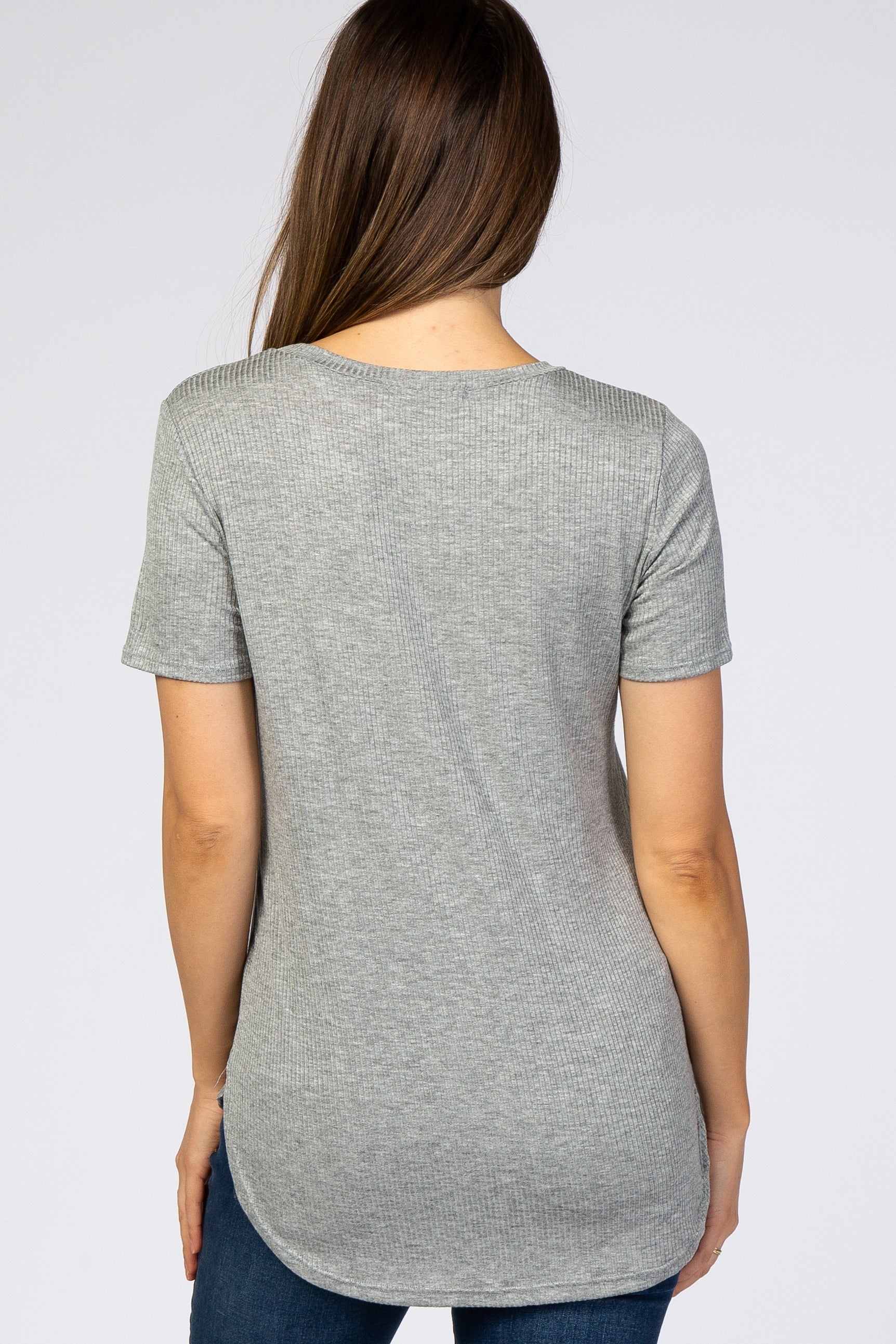 A soft ribbed knit top featuring a crew neckline, short sleeves and a rounded hem.