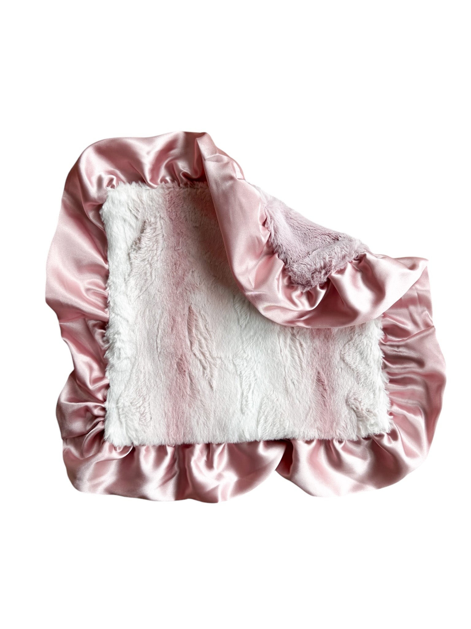 Let your little one snuggle up with our Hollis Luxury Lovie, a petite version of our signature blanket with just as much charm. Designed in a dusty pink fox-inspired print and trimmed in silky satin, this 15" by 15" lovie is the perfect comfort item for naps, travel, and soothing moments.