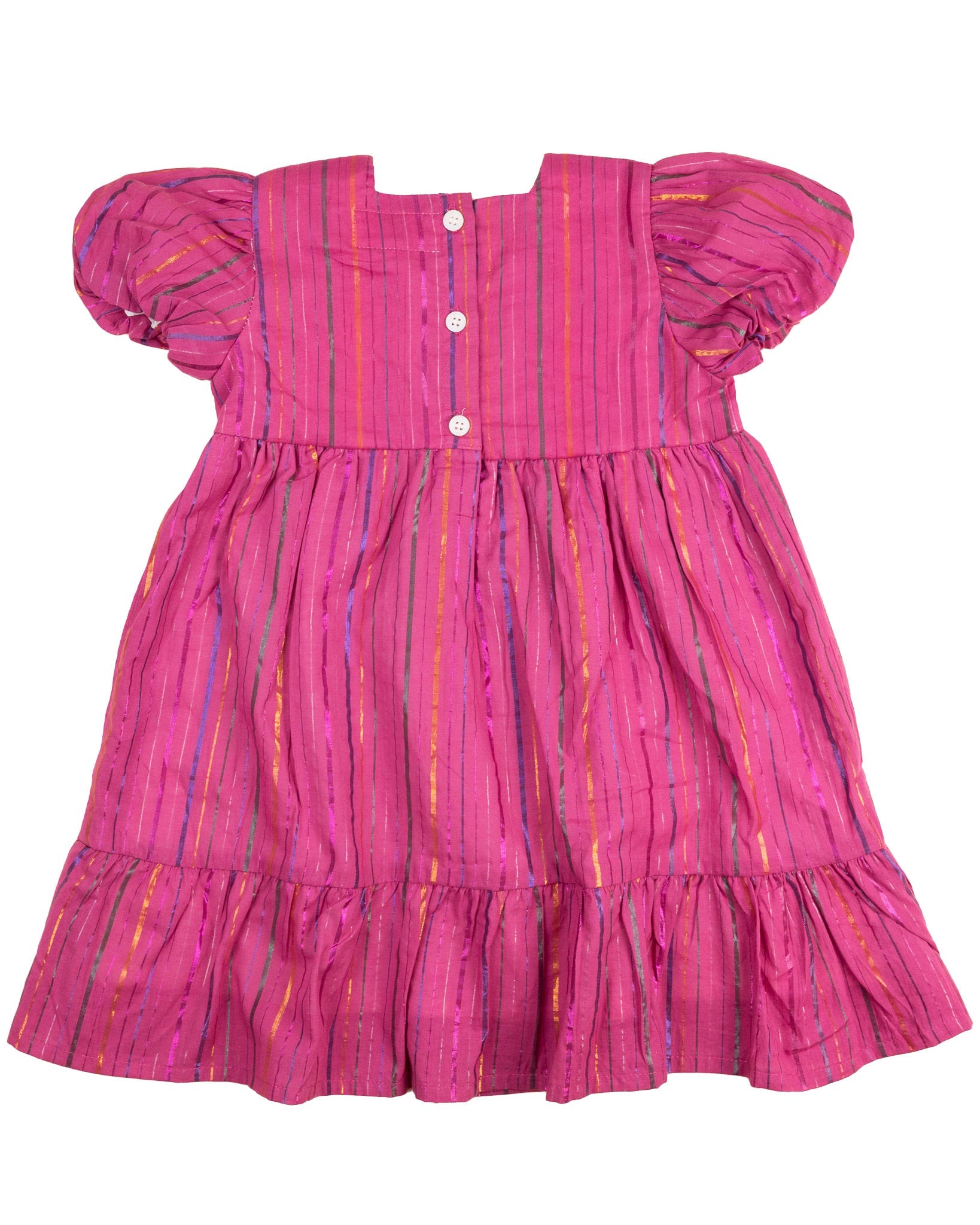 This fun dress is perfect for special occasions. Featuring metallic stripes and a twirl-ready silhouette, this dress is the life of any party. Pair with tights for a glitzy Christmas party dress!
