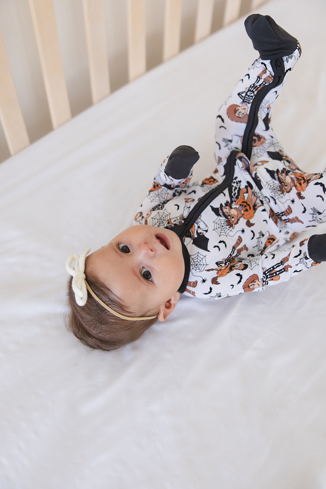 With fold-over wrist and ankle cuffs for added comfort and a double zipper for effortless diaper changes, our zippies are a game-changer for busy parents. The tagless design guarantees irritation-free wear, making them ideal for all-day lounging and play.