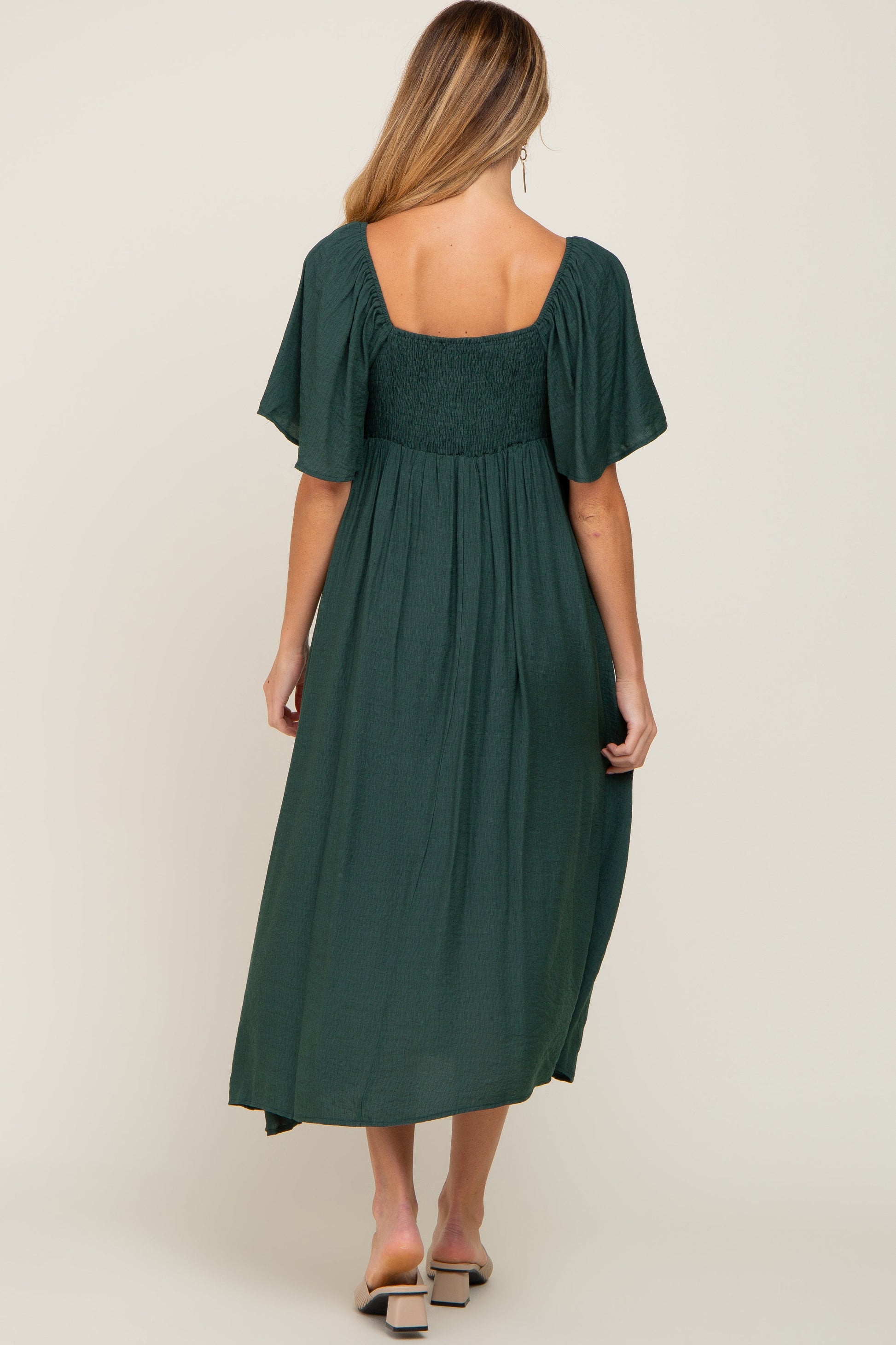 Hunter Green Front Tie Ruffle Sleeve Maternity Midi Dress