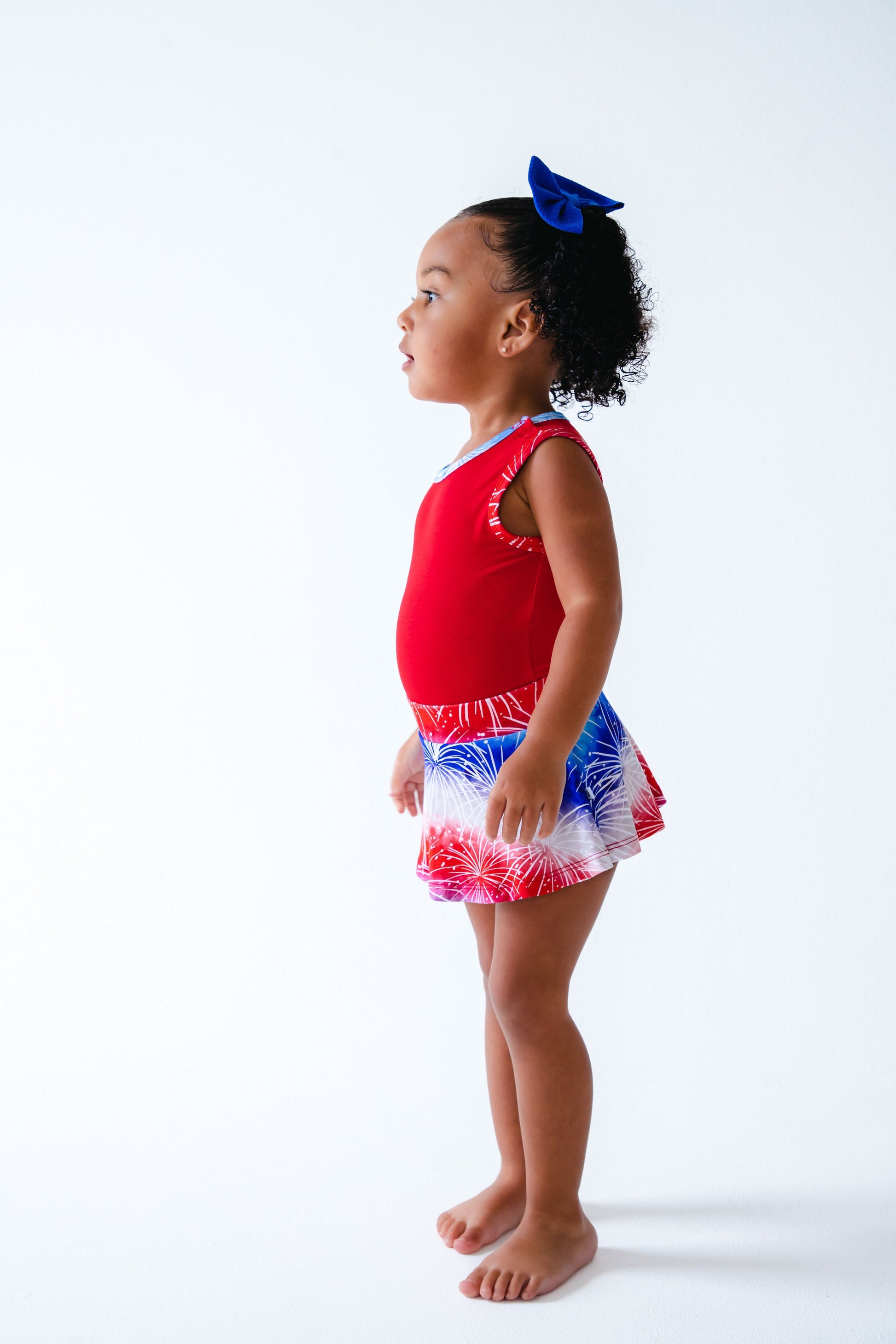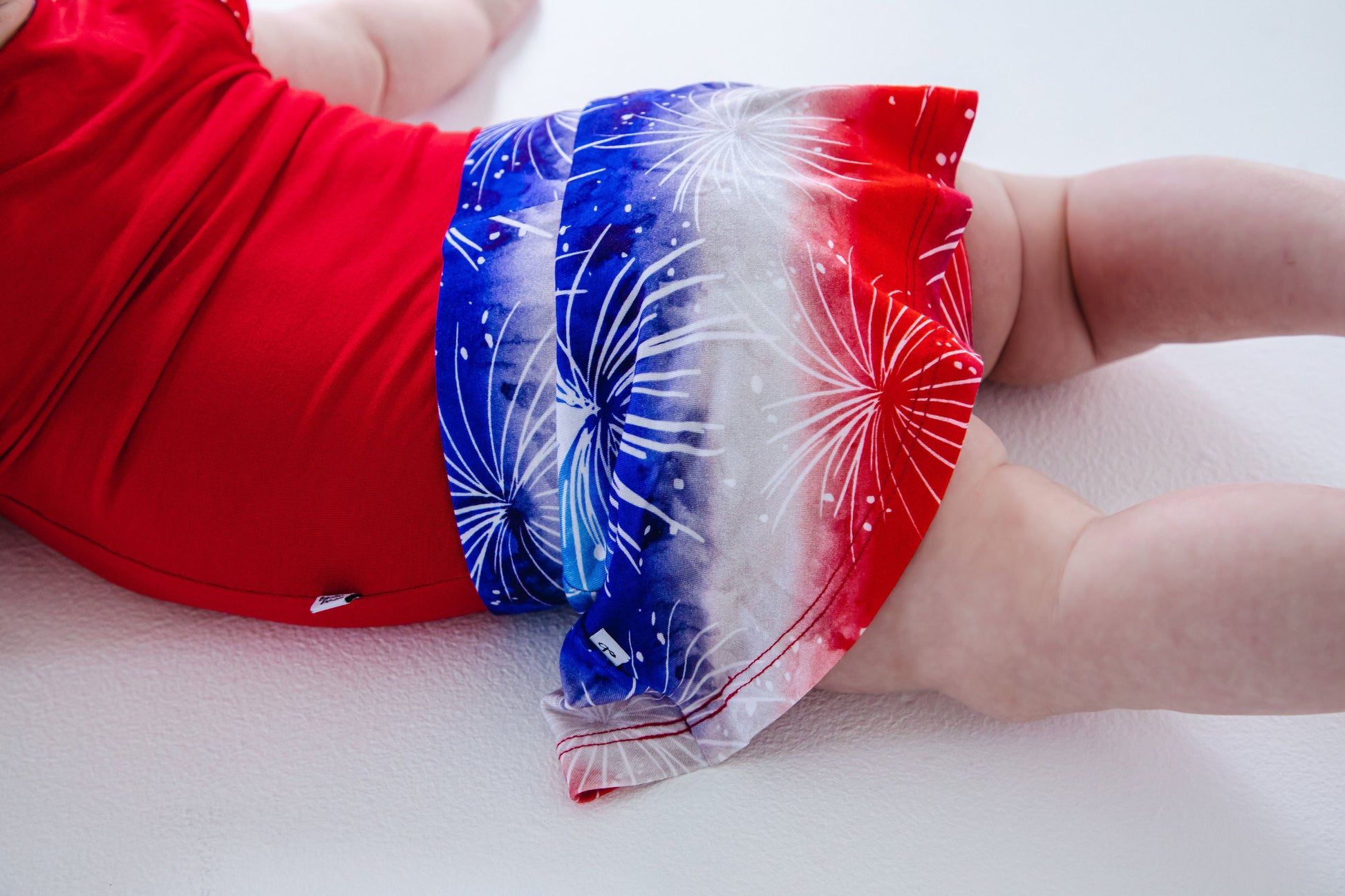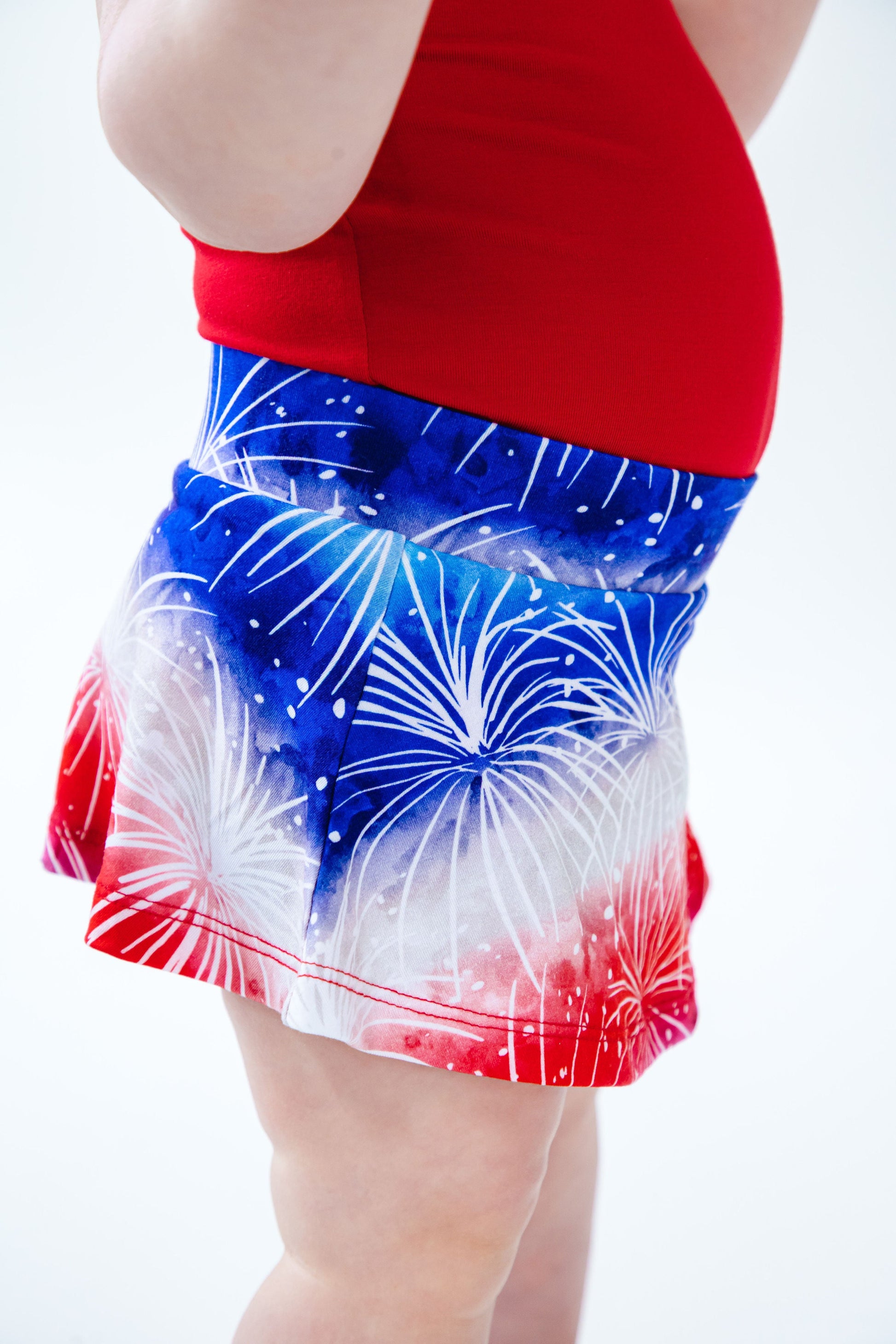 This stylishly skirted piece features fireworks on buttery-soft viscose from bamboo and spandex fabric for fashionable fun that will keep you standing out at your 4th of July festivities. Get ready to show the fireworks some serious competition!