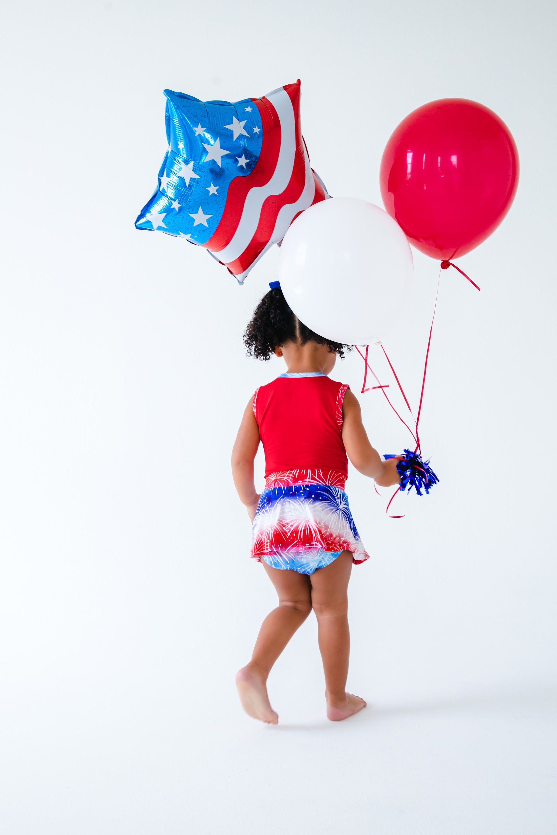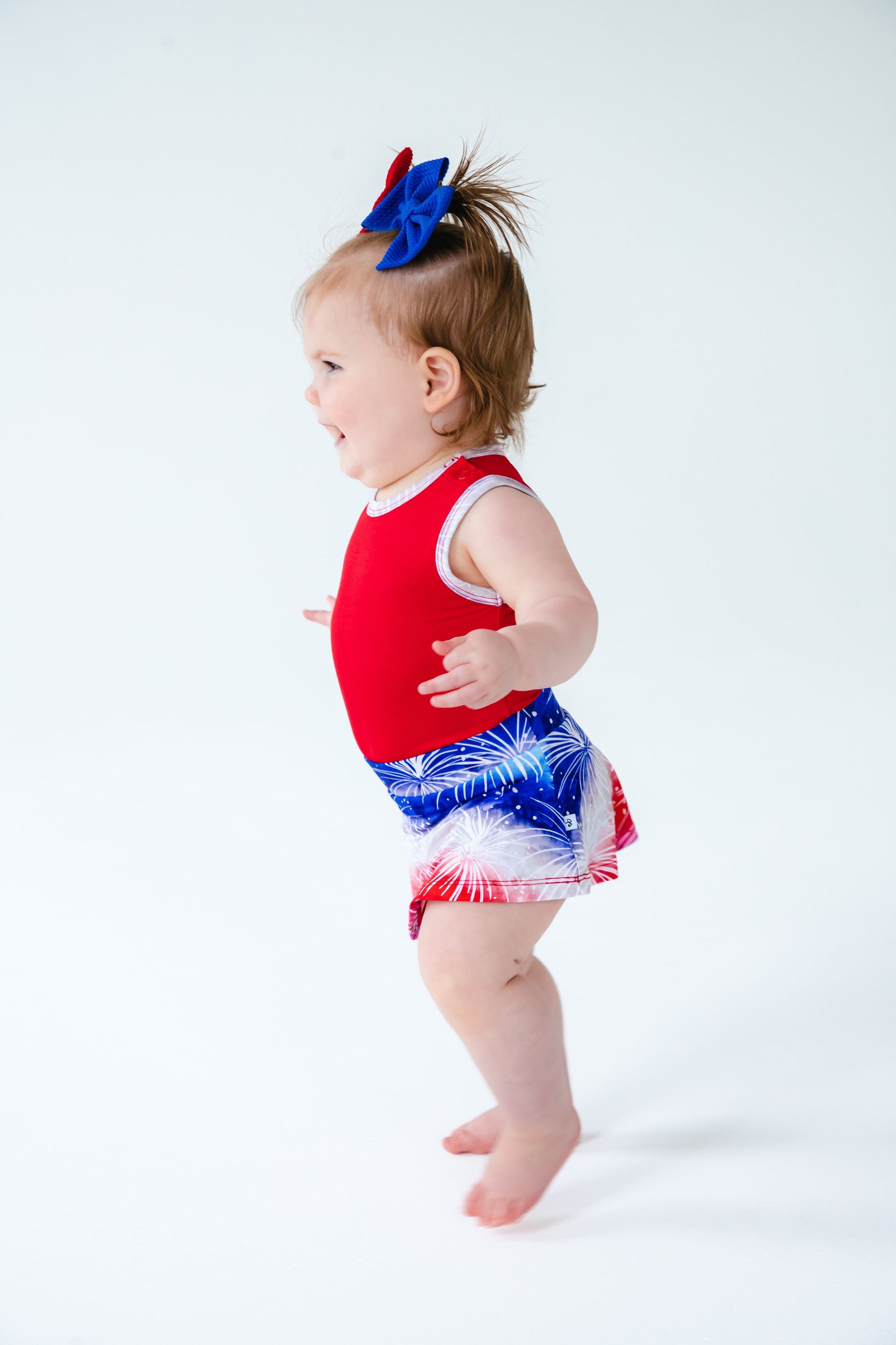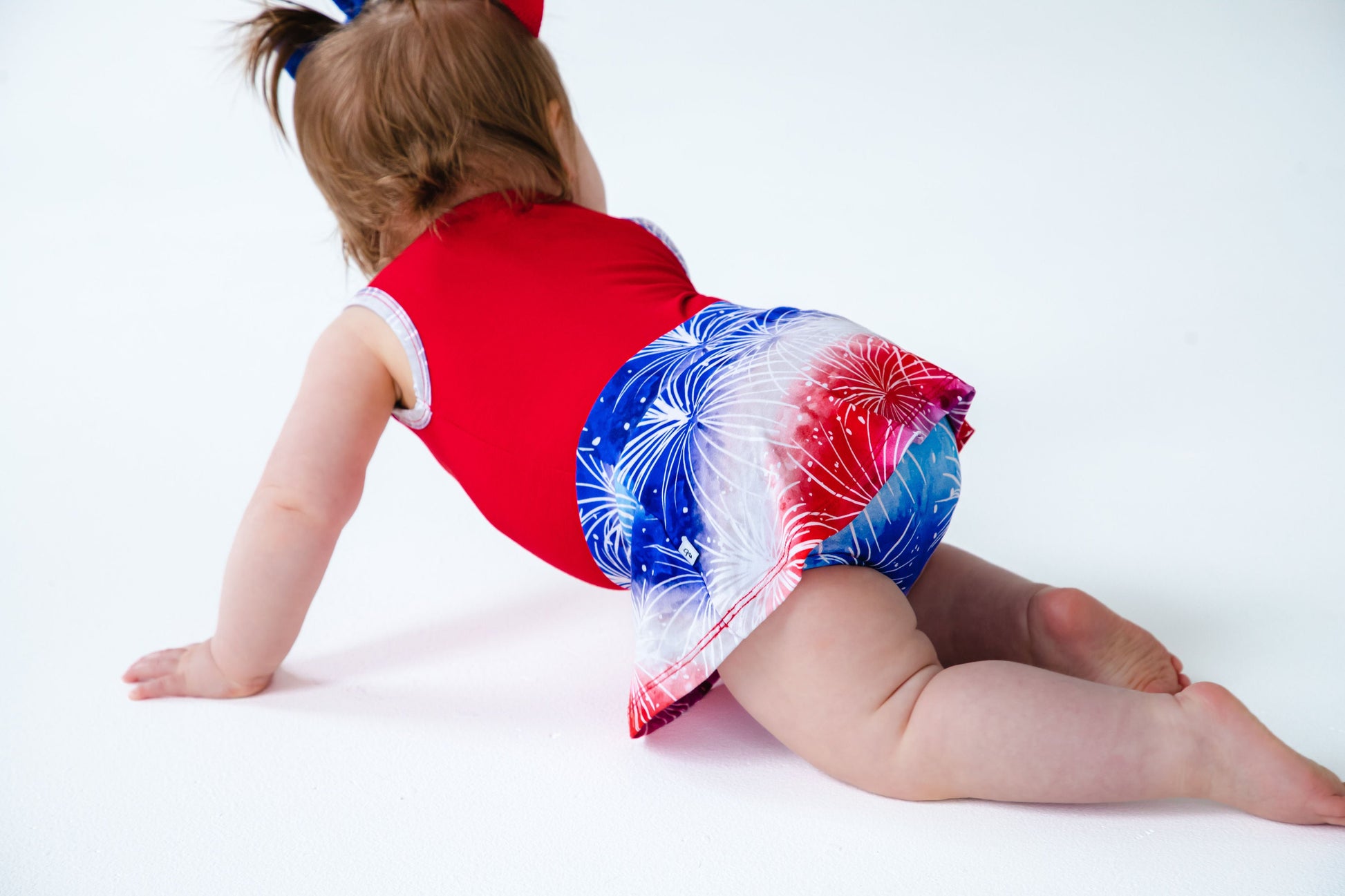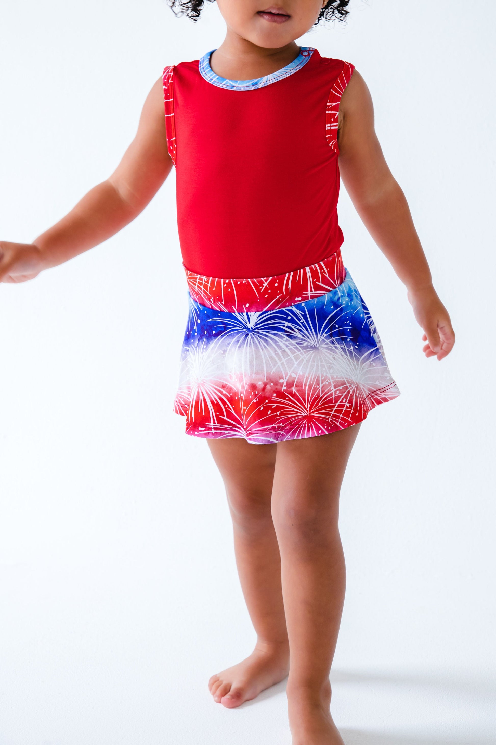 This stylishly skirted piece features fireworks on buttery-soft viscose from bamboo and spandex fabric for fashionable fun that will keep you standing out at your 4th of July festivities. Get ready to show the fireworks some serious competition!