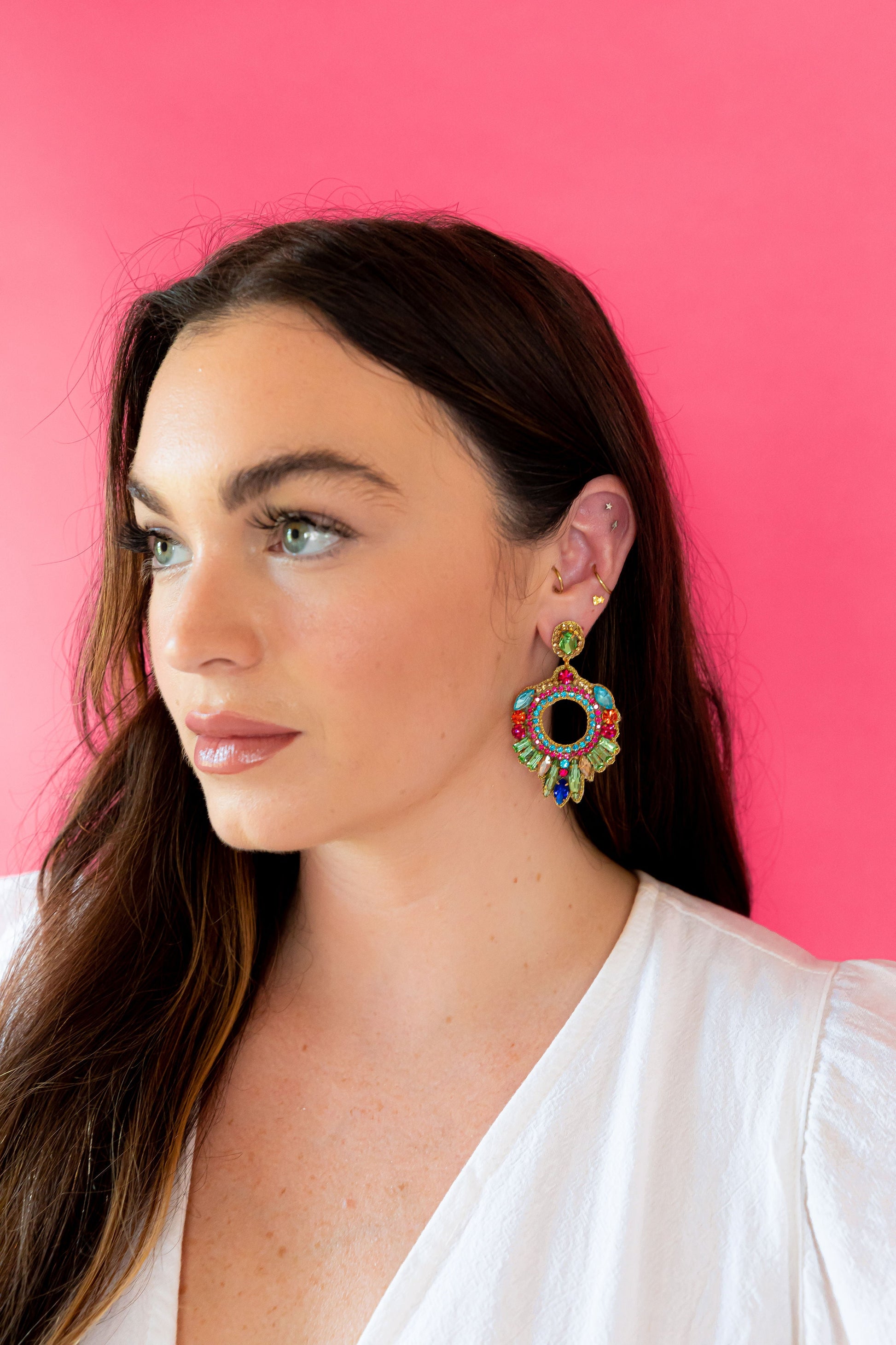 These beautiful statement earrings are perfect to pair with any solid colored outfit.