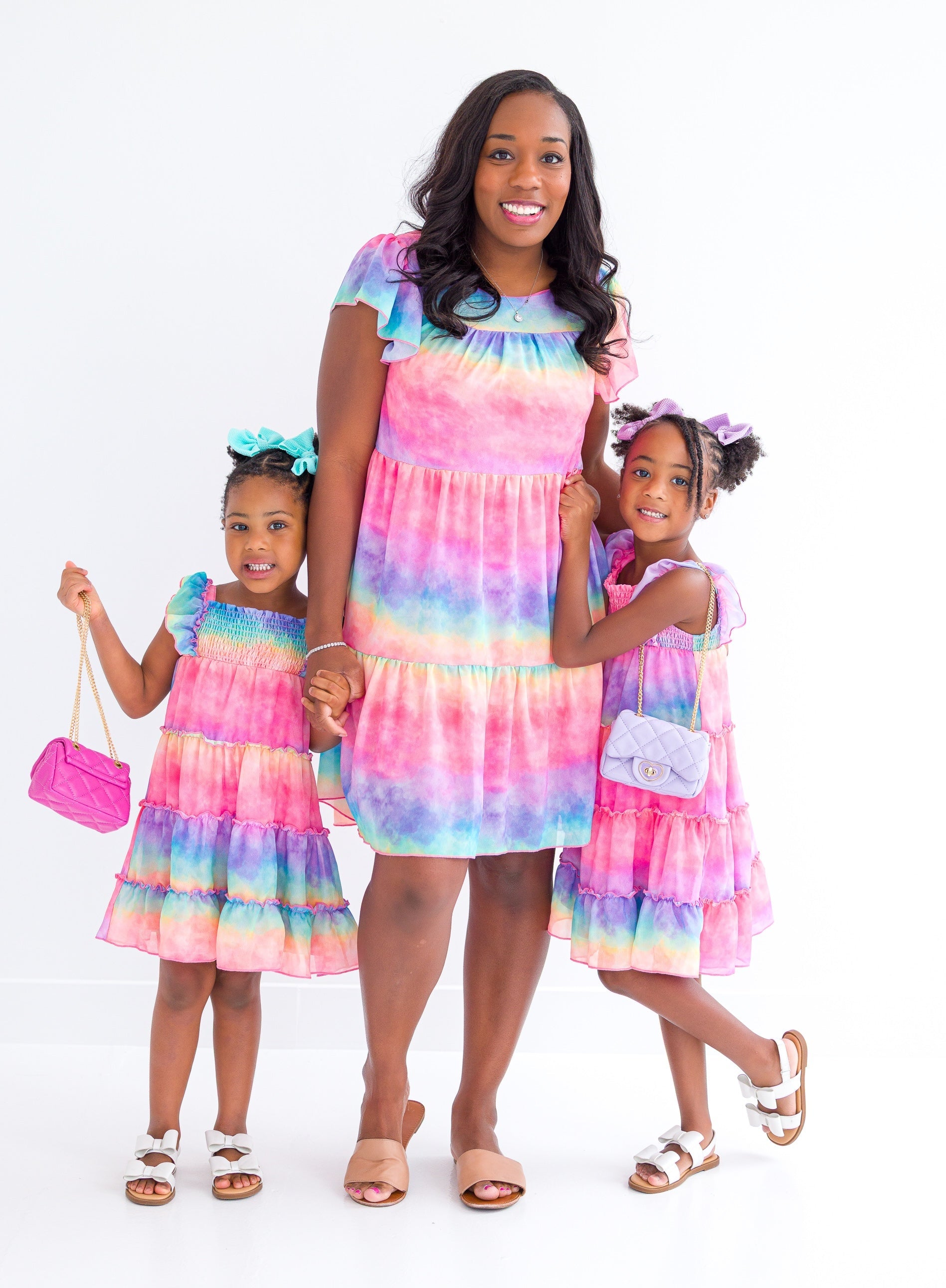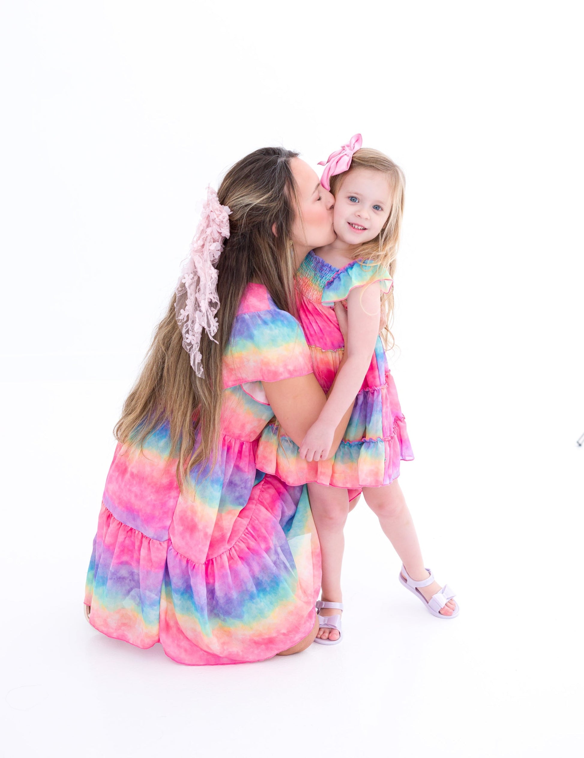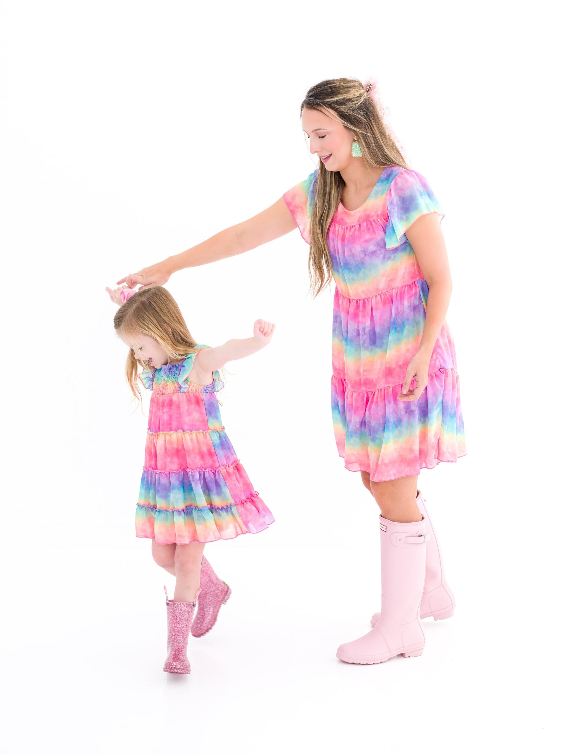 Add a splash of color to your wardrobe with this lightweight and airy chiffon dress, designed for effortless elegance and vibrant style. Featuring soft, pastel rainbow hues, flutter sleeves, and a flattering tiered silhouette, this dress is perfect for spring and summer celebrations, brunch dates, or any occasion that calls for a touch of whimsy. Its flowy, breathable fabric ensures all-day comfort while making a bold, cheerful statement. A must-have for the season!