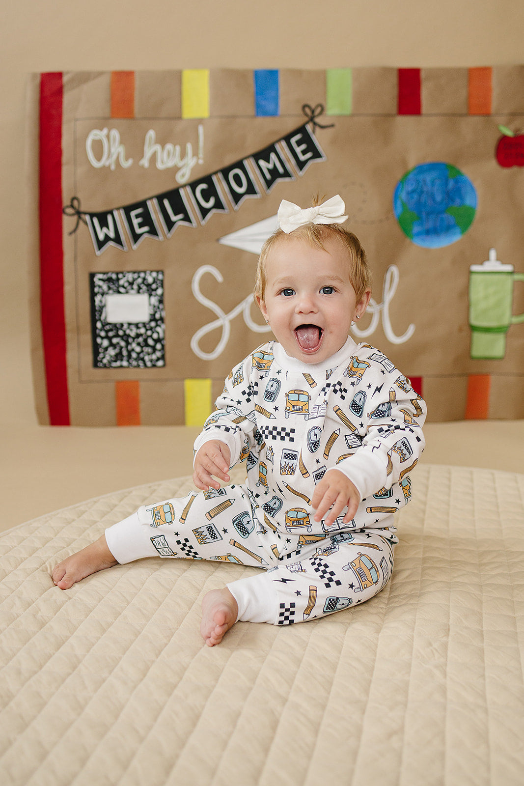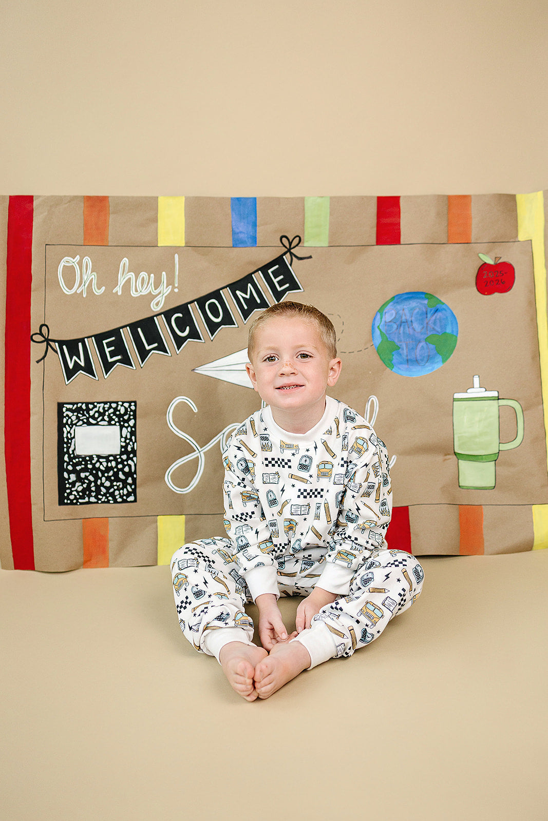 Notebooks, pencils, lightning bolts, and school buses. The Jogger Set | Back 2 Cool brings all the classroom energy in one bold, comfy set. Perfect for first day pics, hallway walks, and snack-time chill.