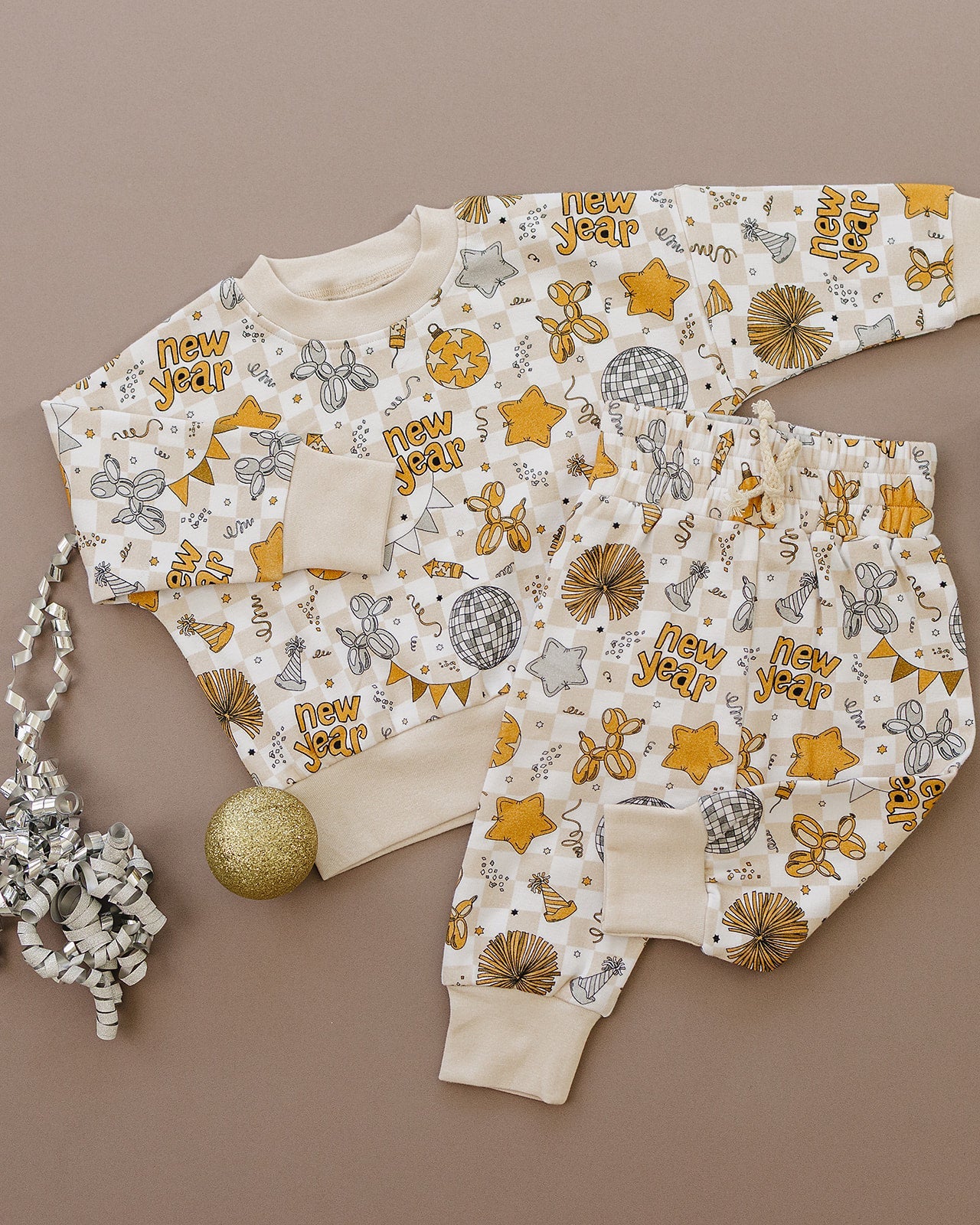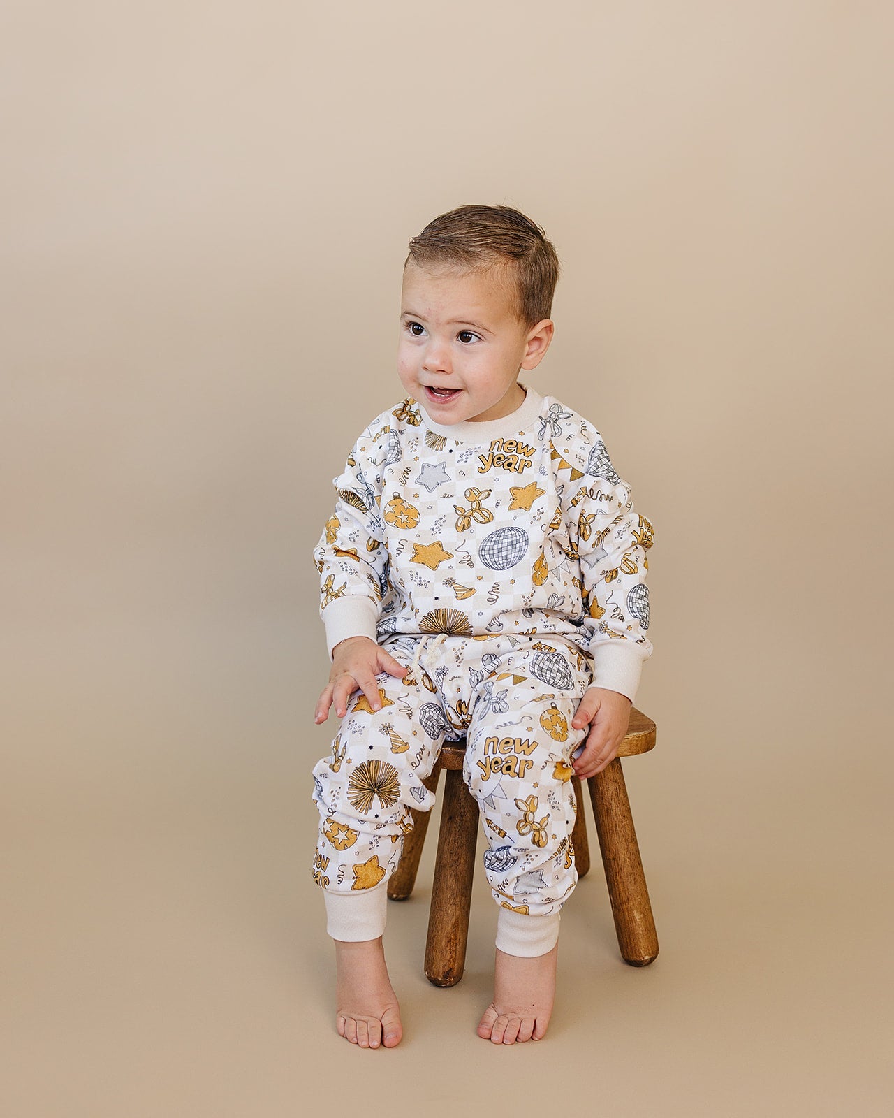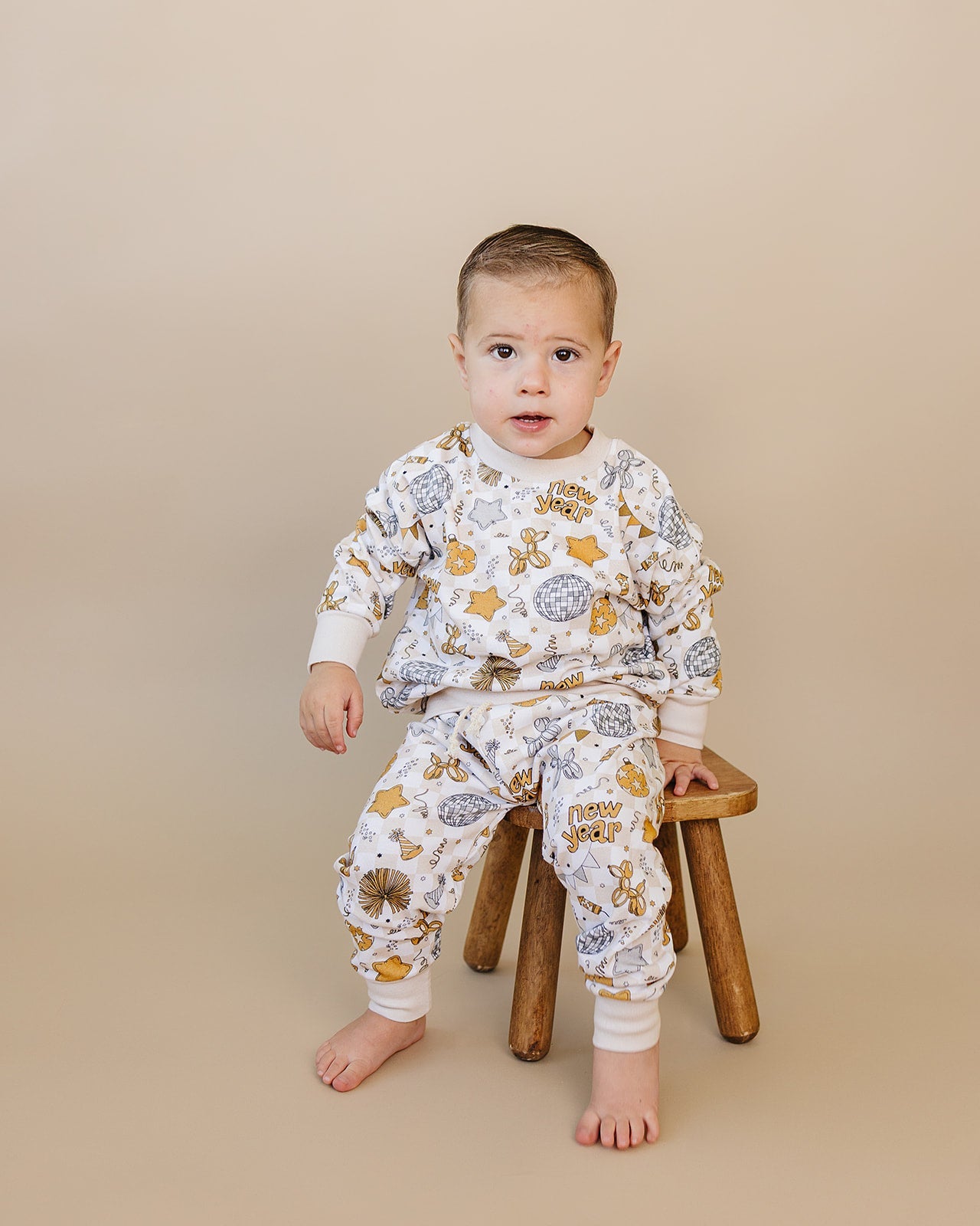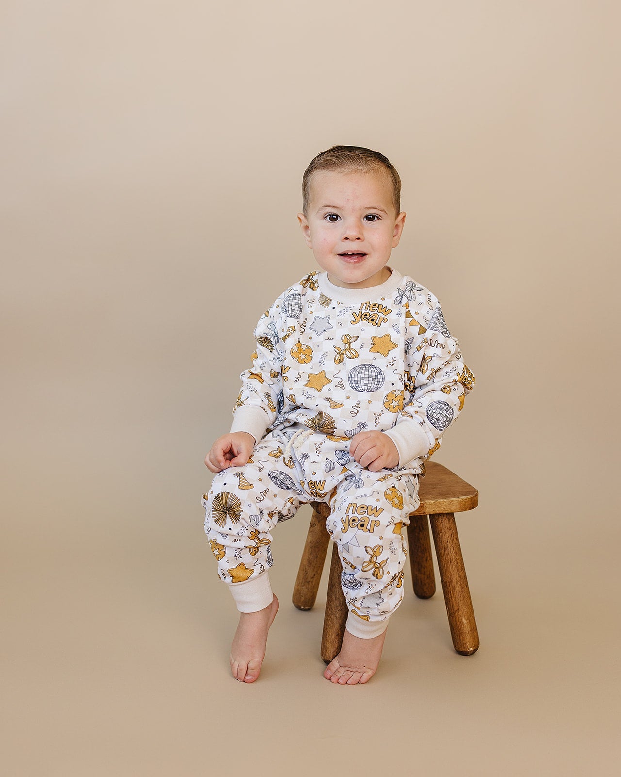The Jogger Set New Year Vibes is made for celebrating in comfort and style. With a fun, gender neutral festive design and a soft cotton-spandex blend, it keeps your little one feeling cozy and looking cool. Whether ringing in the new year at home or out and about, it’s the perfect outfit for fresh starts and happy memories.