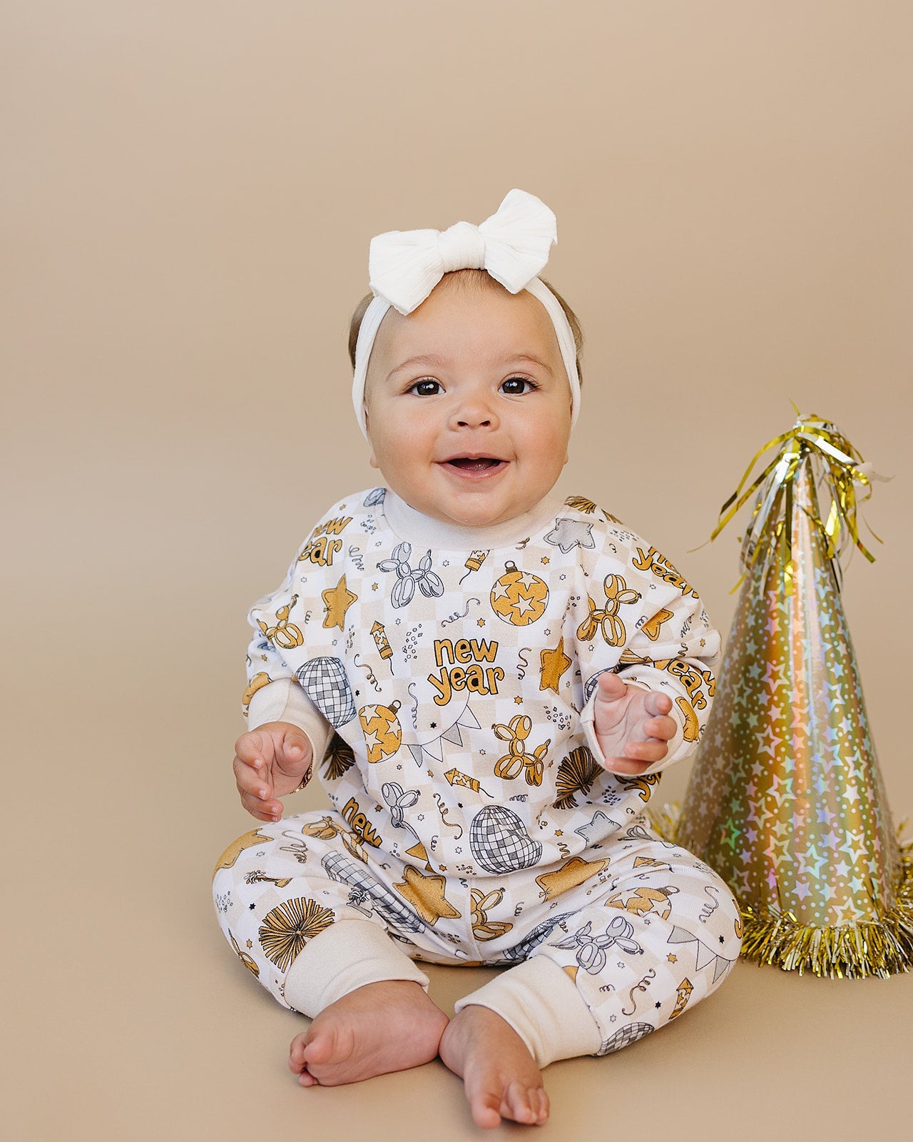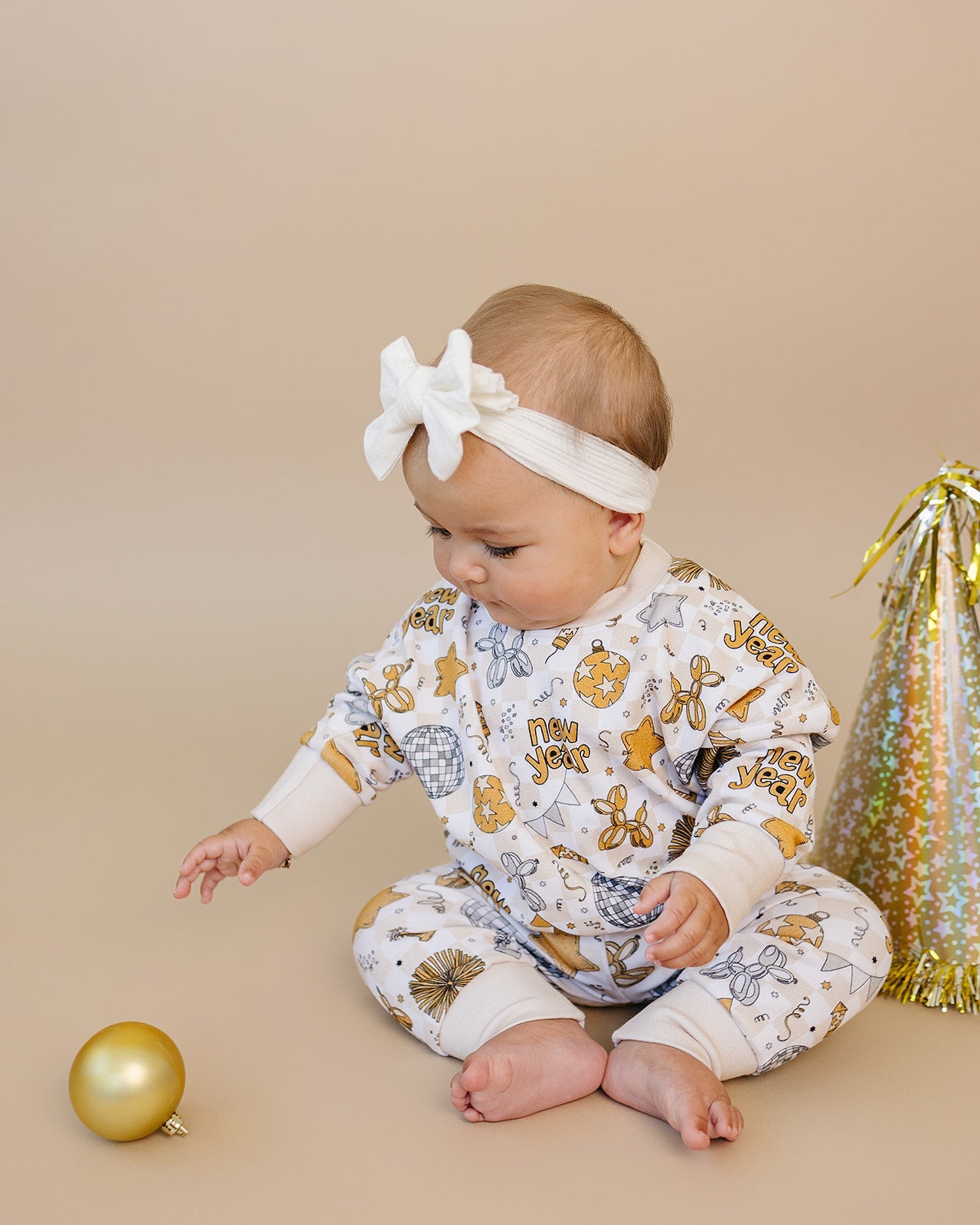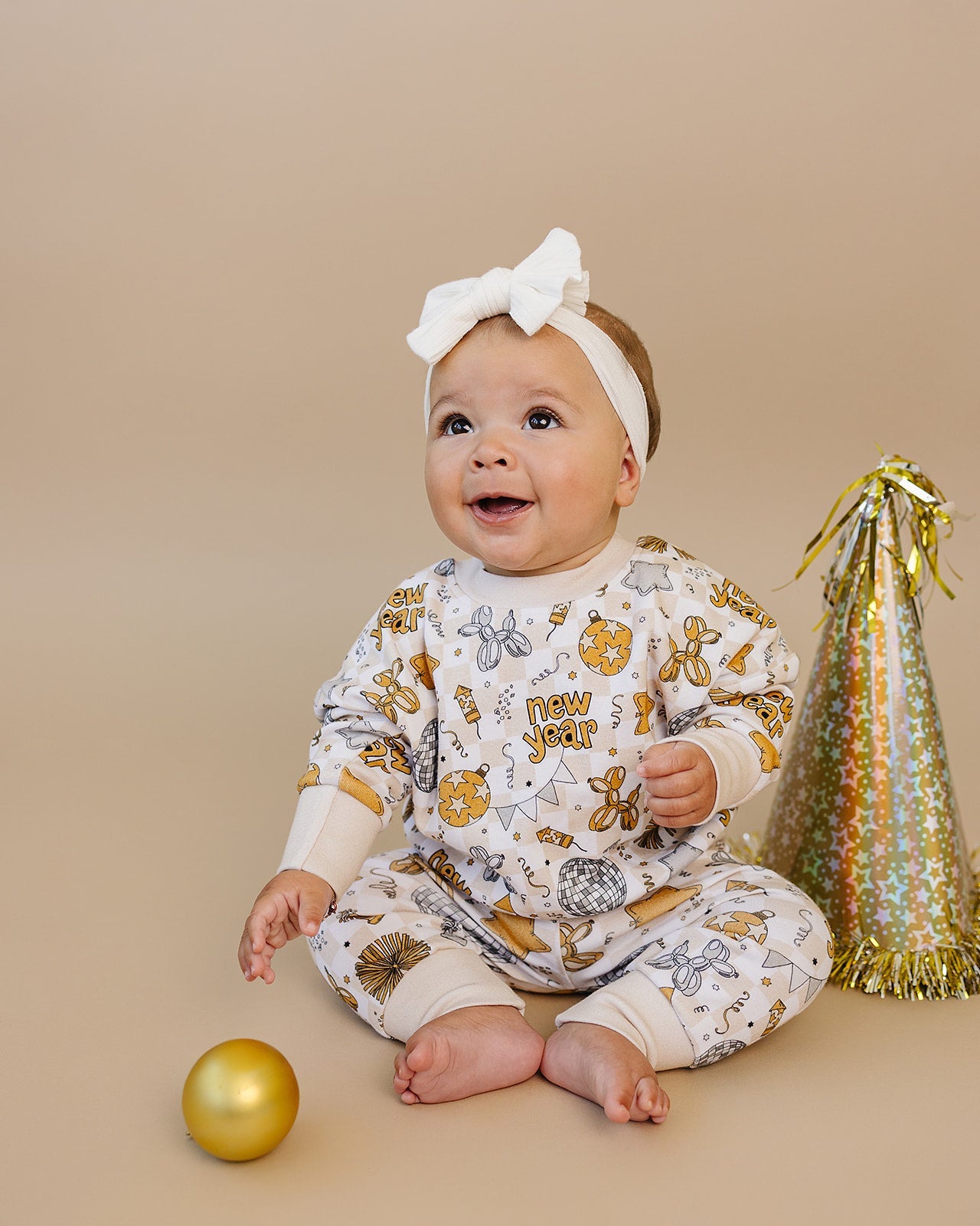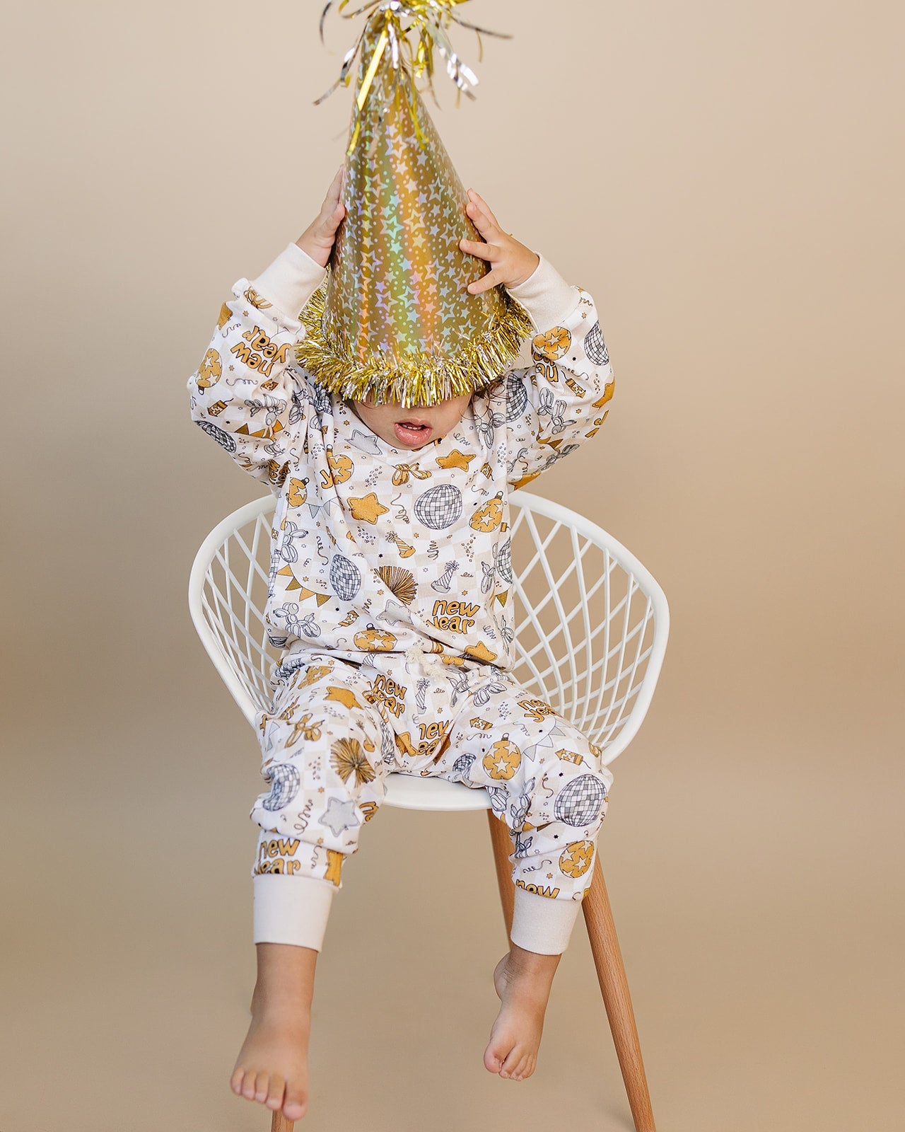 The Jogger Set New Year Vibes is made for celebrating in comfort and style. With a fun, gender neutral festive design and a soft cotton-spandex blend, it keeps your little one feeling cozy and looking cool. Whether ringing in the new year at home or out and about, it’s the perfect outfit for fresh starts and happy memories.