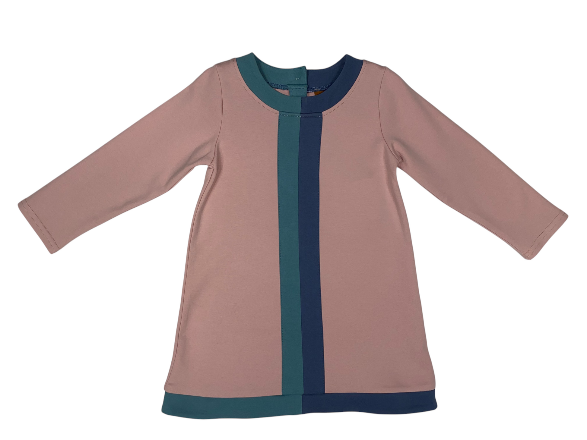 Modern and chic, our Kayla Dress – Mauve is perfect for girls who love standout style. Designed in a soft mauve hue, this long-sleeve dress features bold vertical and horizontal colorblock accents in teal and navy, adding a trendy pop to a classic silhouette.