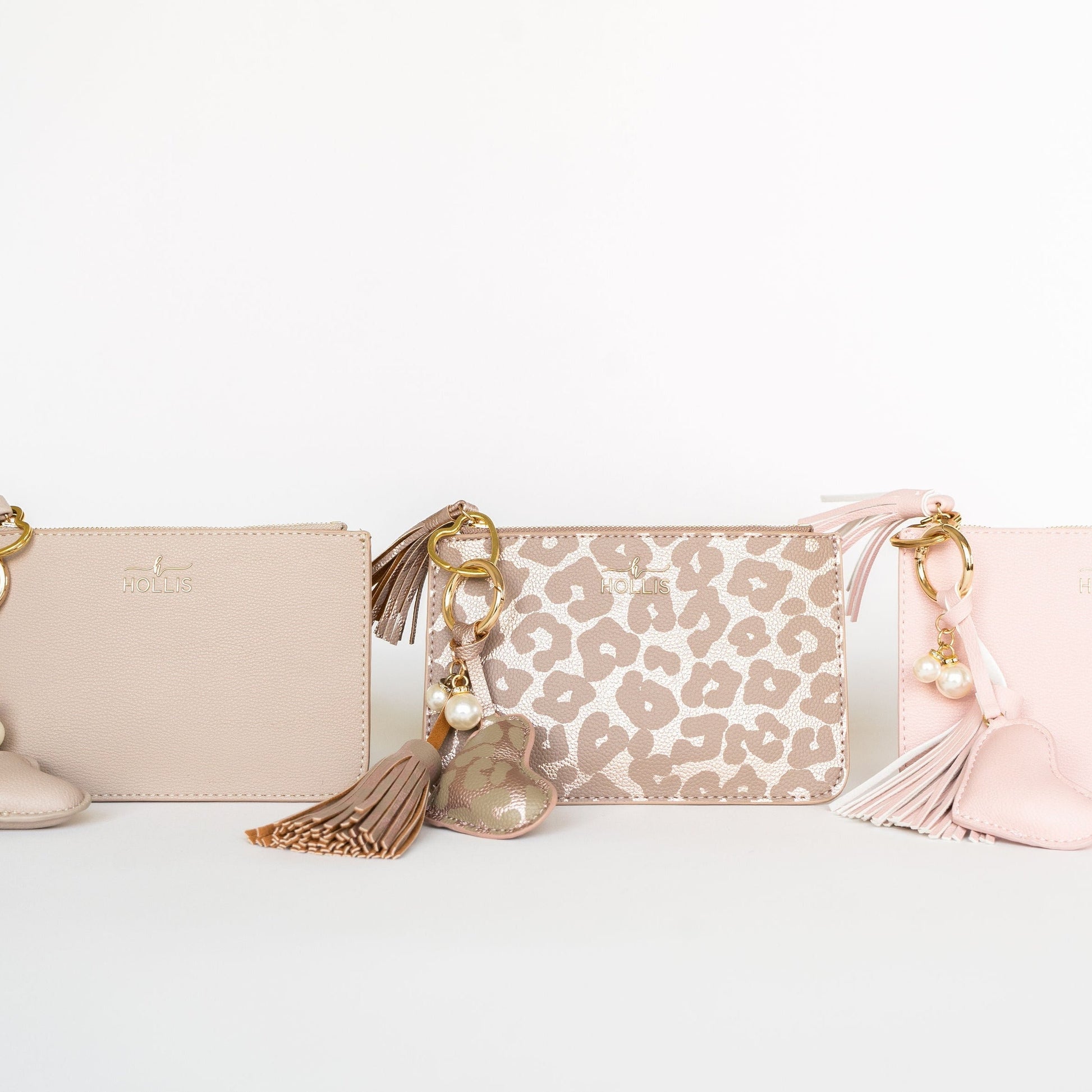 Introducing our fabulous Dusti Rose Heart keychain paired with a convenient coin purse, creating the ultimate duo for keeping your keys and cash together in style. The heart keychain adds a touch of charm to your keys, while the coin purse is perfectly sized to hold your cards and cash securely. Available in Blush, Nude, Leopard, and Metallic Mocha, you can choose the color that suits your style. With dimensions of 7"x4.75", this duo is compact and easy to carry. Stay organized and fashionable with our Dusti Rose Heart keychain and coin purse duo, a must-have accessory combination.