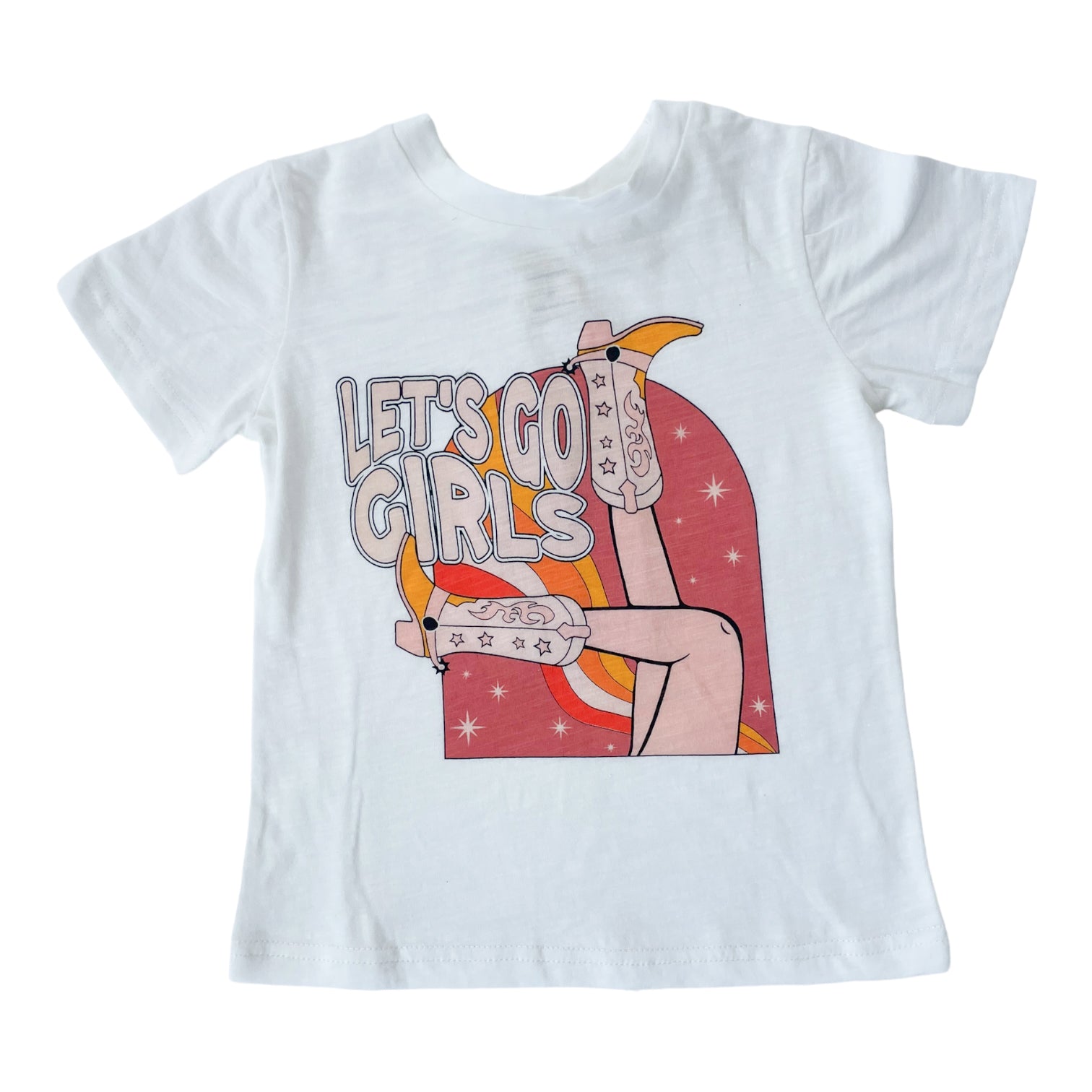Kick your Boots Up Rockin Bottom Graphic Tee shirt is made from 100% cotton, offering comfort and style. It feature a distressed hem at the neck for a trendy, vintage look. This tops pair perfectly with our Bell Bottom Pants and are the ideal complement to our ruffled headbands or clippys. Note: Bell bottoms are sold separately.