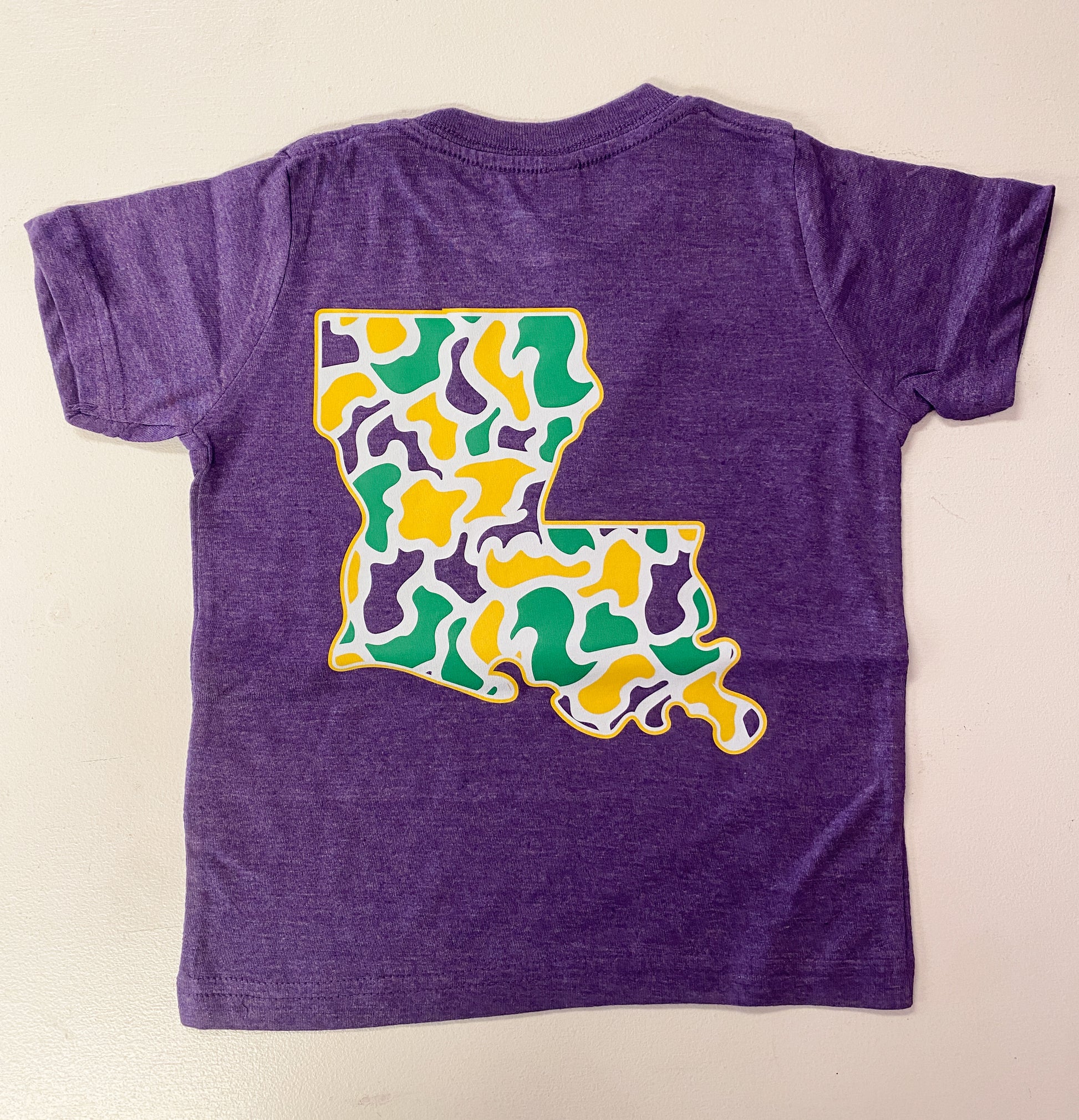 Kids Louisiana Camo Mardi Gras T-Shirt