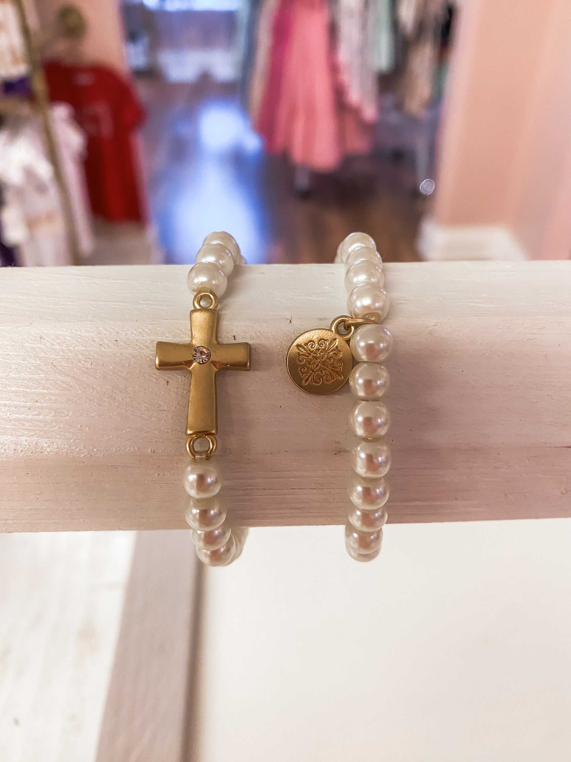 Kids’ Pearl Bead Bracelet with Gold Cross