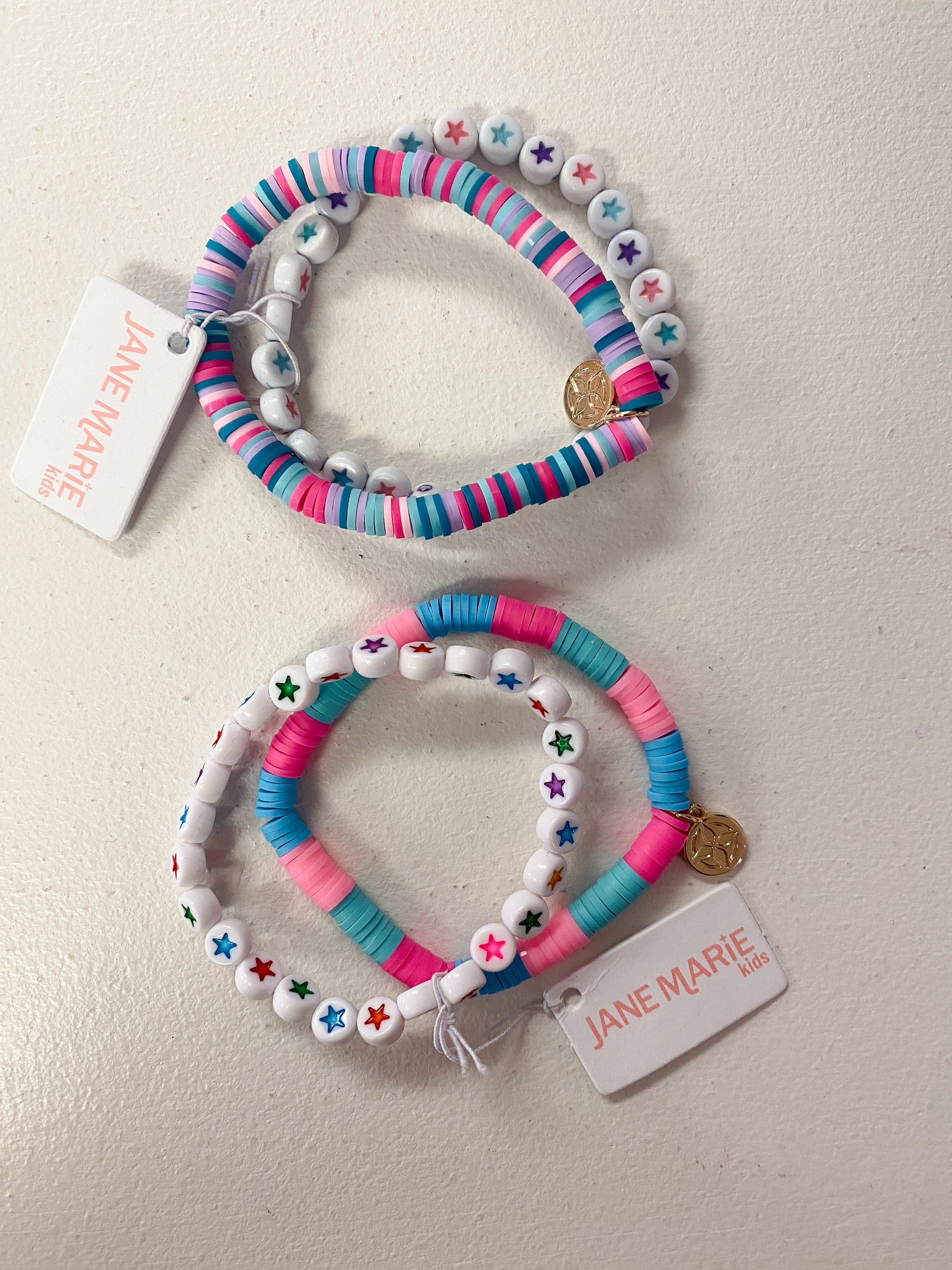 Kids Set of 2, Multi Rubber Disk with Star Beaded Bracelet