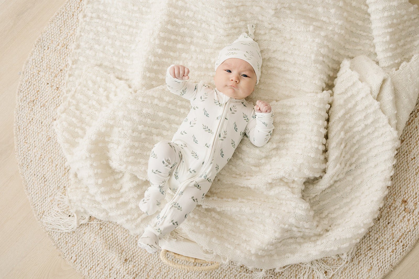 The Green Leaves knot hat is super soft and comfortable! Comes in one size and fits newborn to 3 months depending on head size.