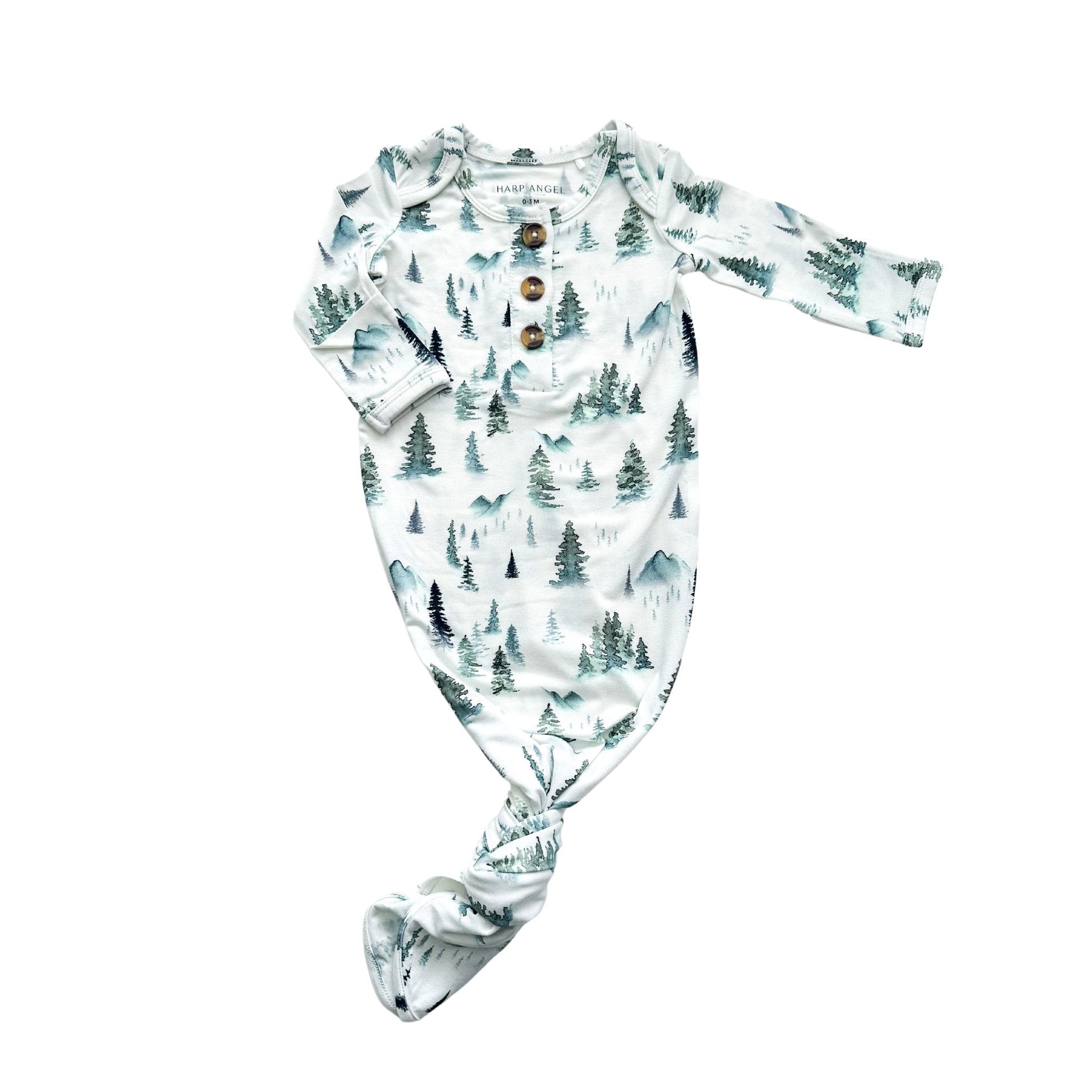 Create a cozy and stylish sleep environment for your baby with our gender-neutral green forest bamboo baby knotted gown. Crafted with fold-over cuffs and breathable fabric, this gown ensures easy diaper changes and a comfortable, breathable night's sleep.