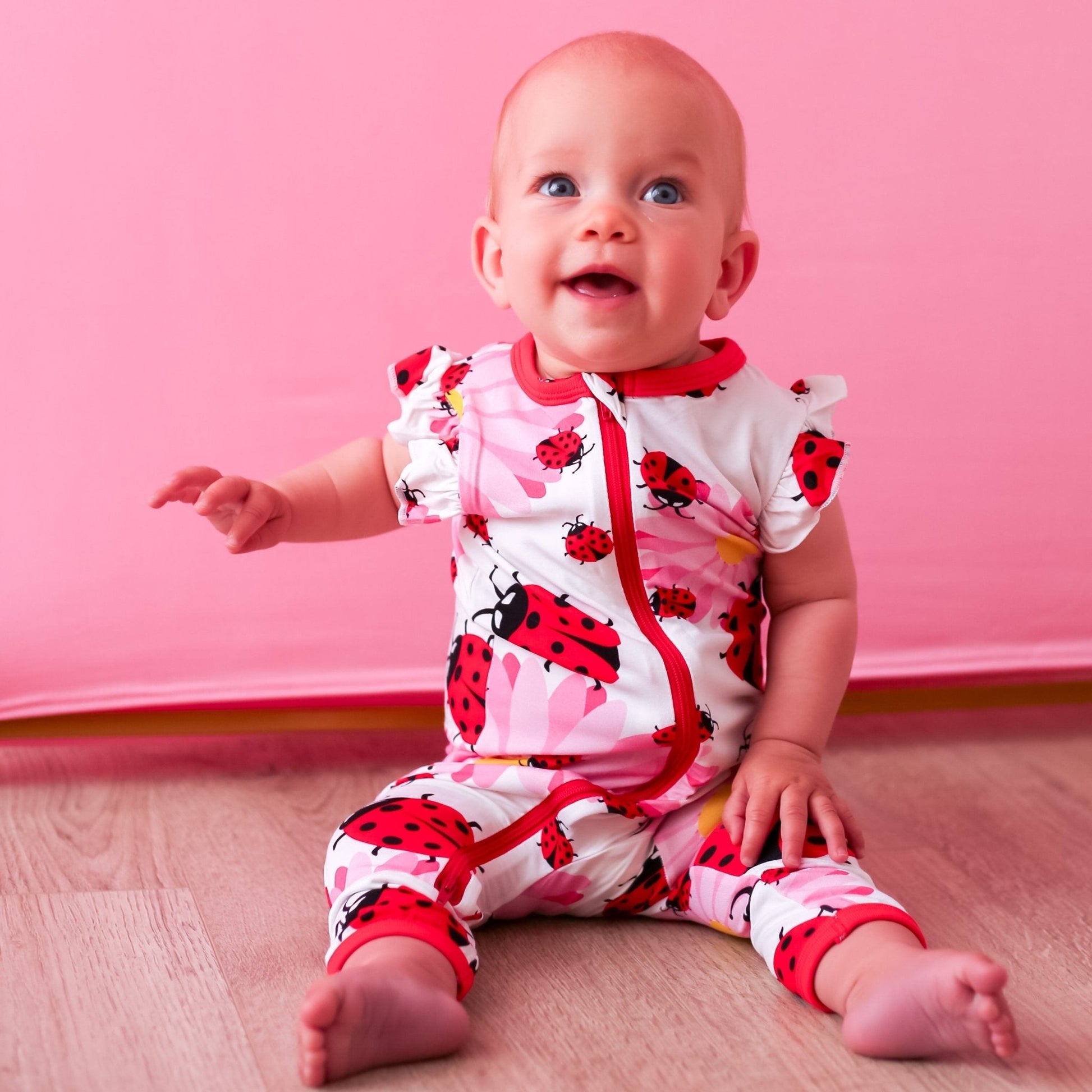 Our amazingly soft short sleeve coveralls are perfect for summer time lounging. Dual zippers make for easy breezy diaper changes.