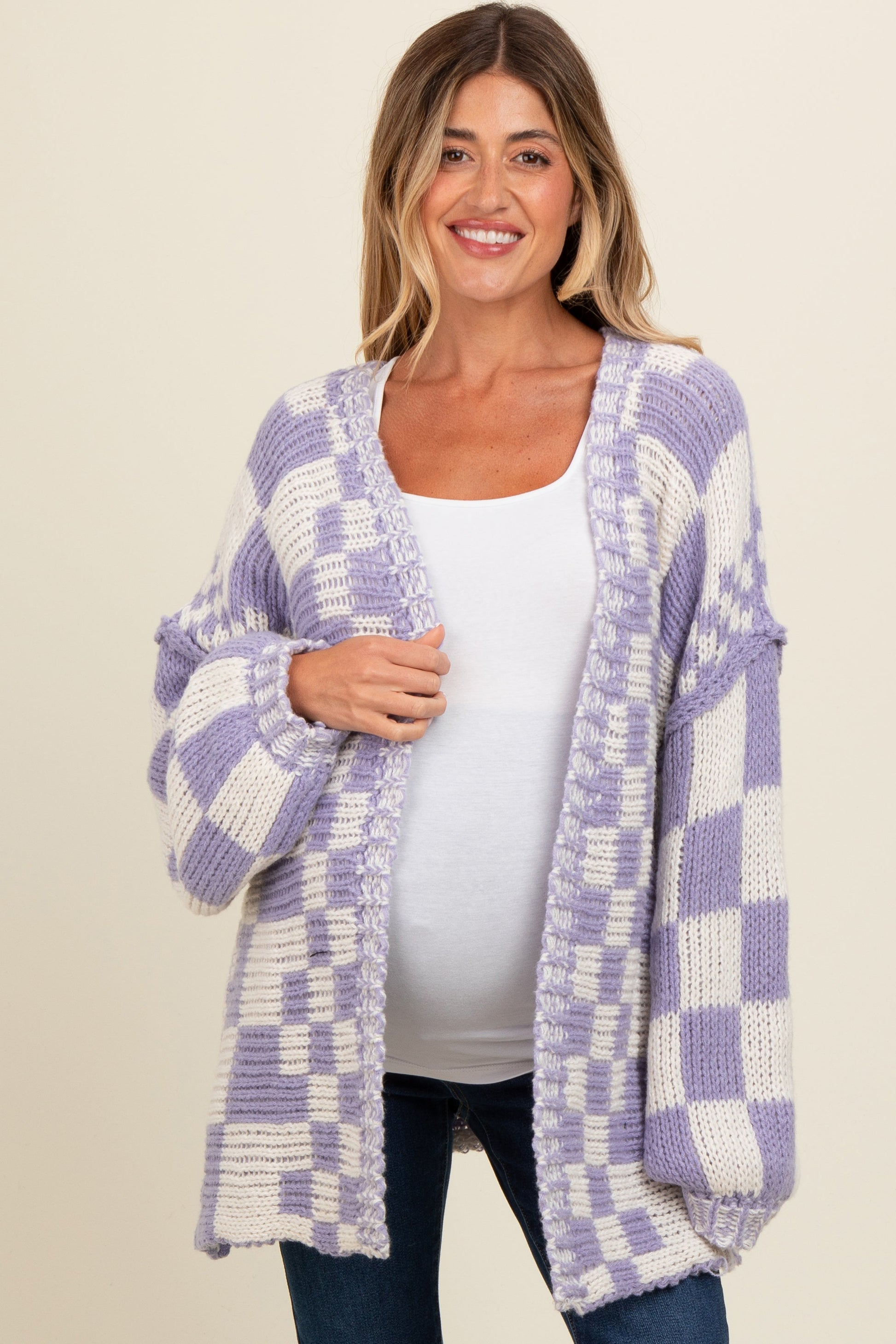 Lavender Mixed Check Pattern Chunky Maternity Cardigan