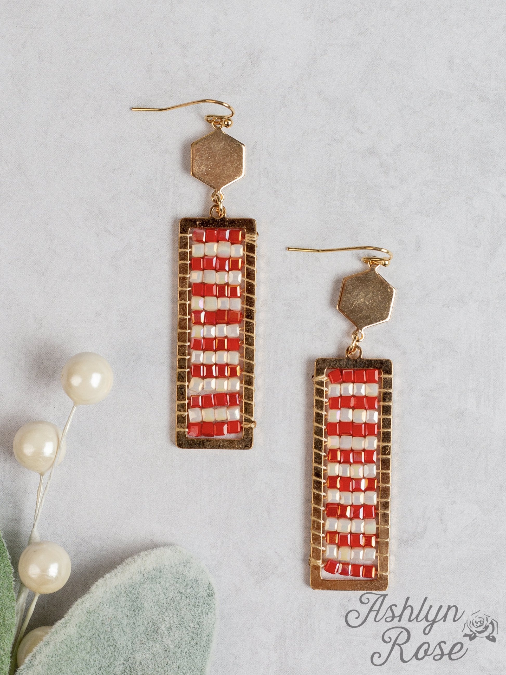 Layers of Sparkle Rectangle Sparkle Earrings, Red