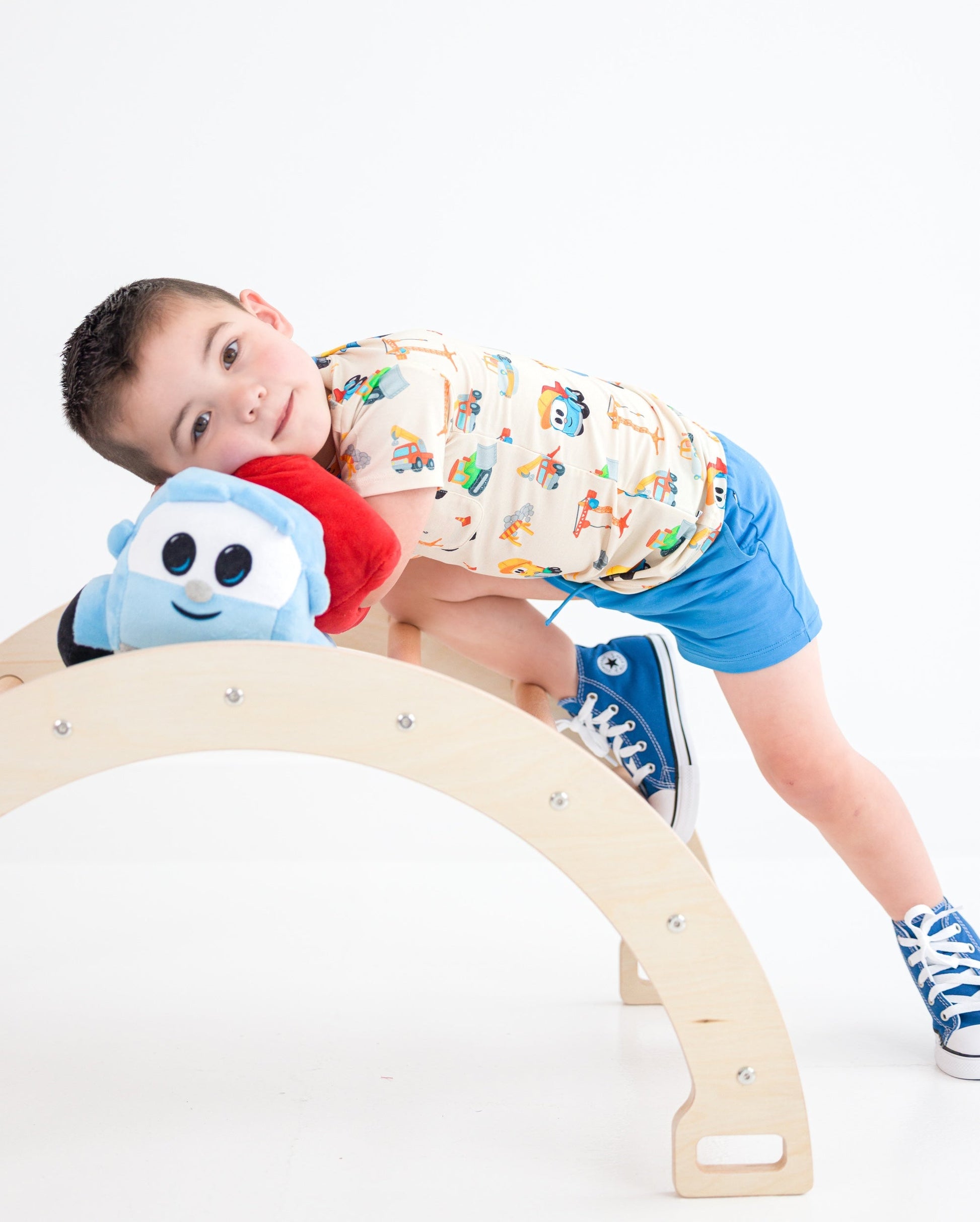 Built for Big Adventures! This Leo the Truck™ shirt and shorts set is made for little ones who love trucks, tools, and tiny adventures. Crafted from our signature bamboo viscose blend, it’s breathable, lightweight, and ultra-soft—perfect for keeping kids cool and comfy through playtime and beyond. Featuring cheerful construction scenes and a fun pocket detail, this set brings everyday comfort with a side of imagination.
