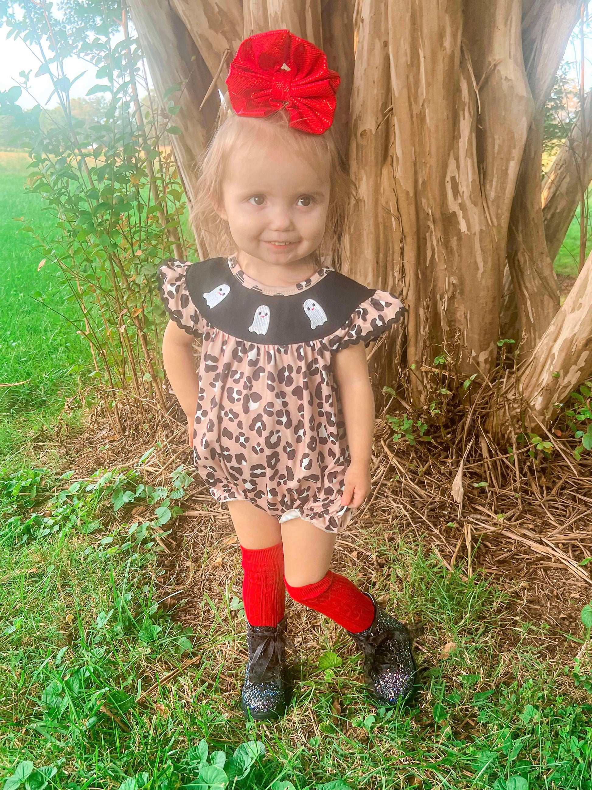 Leopard ghost embroidery Romper