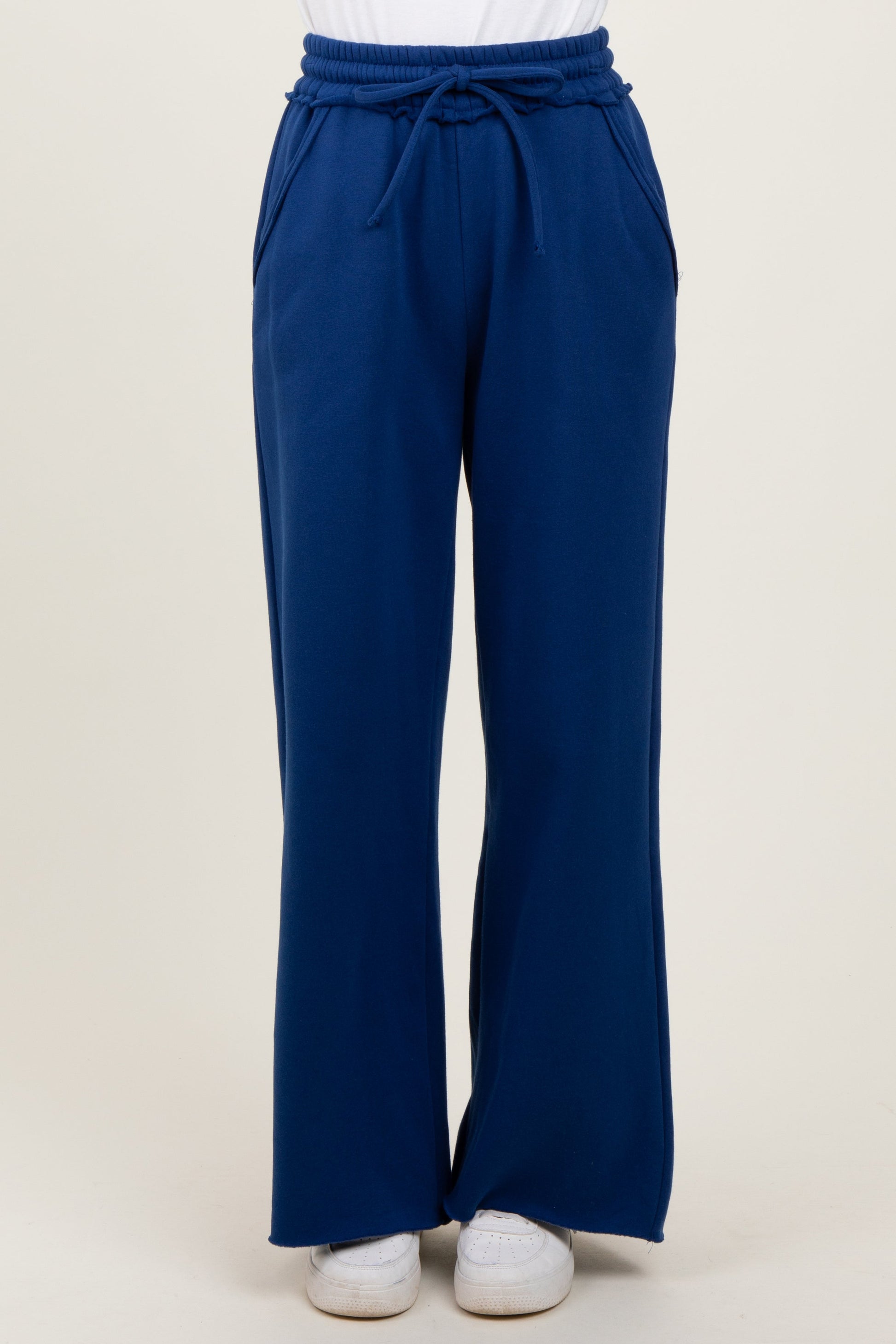 Light Navy Exposed Seam Wide Leg Sweatpants