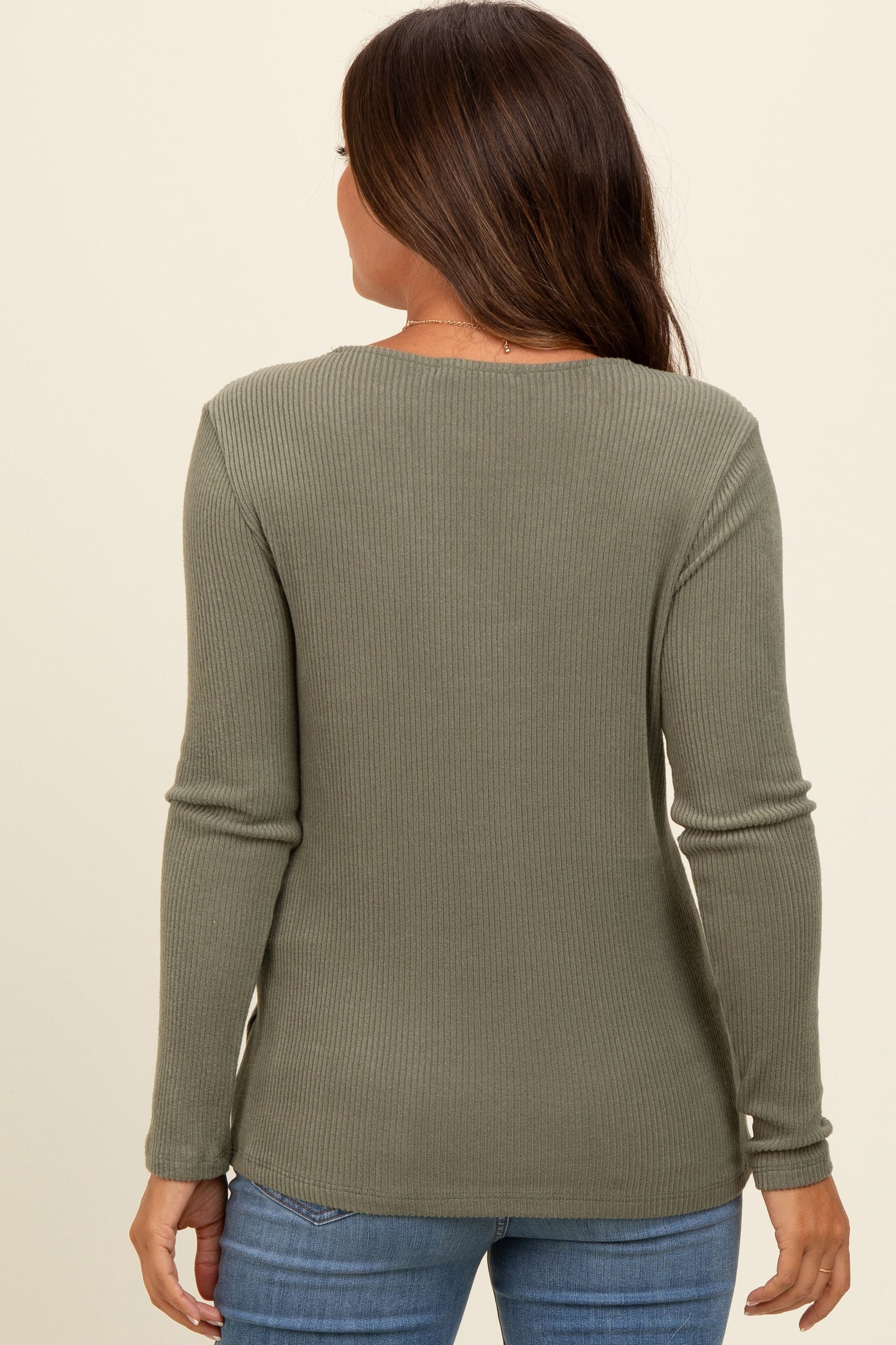 Stay cozy and stylish throughout your pregnancy with this Light Olive V-Neck Long Sleeve Maternity Top. Crafted from soft, ribbed knit fabric, it offers gentle stretch to accommodate your growing bump while ensuring all-day comfort. The unique V-neckline features a double-layered collar with delicate button accents for a chic and modern look. Perfect for casual outings or layering, this maternity top pairs effortlessly with jeans or leggings. Its versatile olive shade complements every skin tone, making it a must-have staple in your maternity wardrobe. Machine washable for easy care.