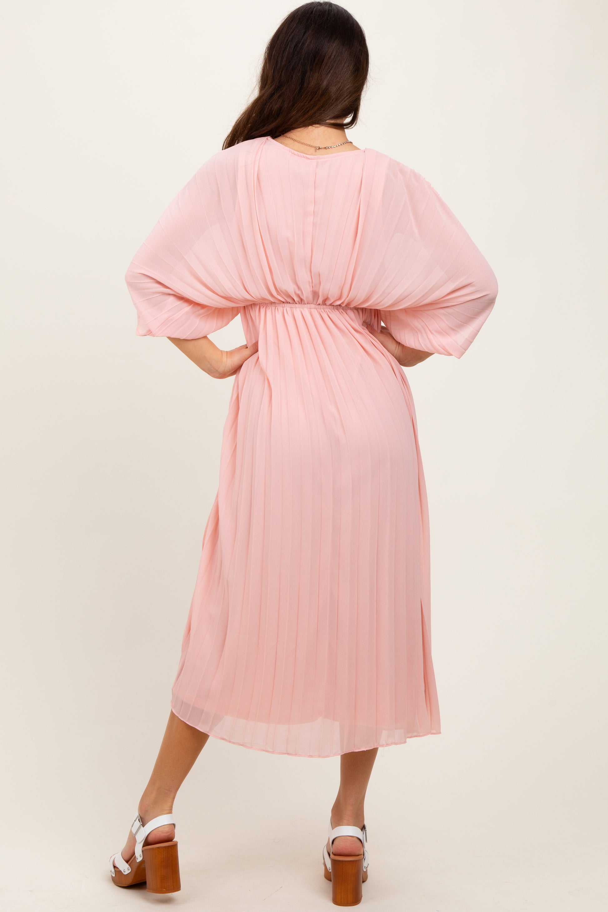 Step into elegance with our Light Pink Pleated V Neck Maxi Dress. This stunning dress features a flattering V-neckline and delicate pleats that flow beautifully from the waist, creating a graceful silhouette. The soft light pink shade adds a touch of femininity, while the airy fabric ensures all-day comfort. With elbow-length sleeves and a flowing maxi length, this dress is perfect for special occasions or a stylish day out. Pair it with your favorite heels or sandals to complete a look thatโs effortlessly chic and timeless. Embrace your feminine side in this must-have maxi dress.