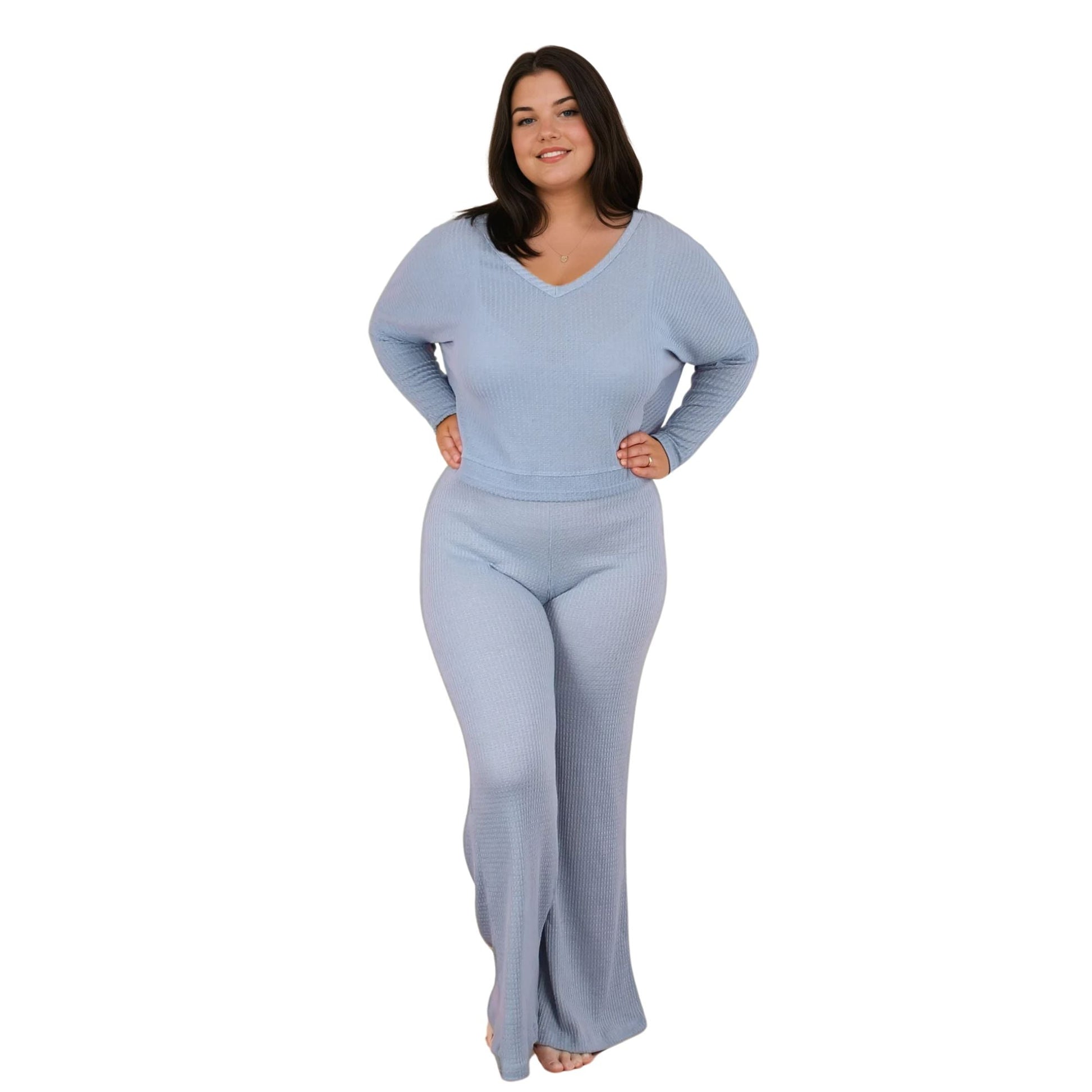 Wrap yourself in the ultimate comfort with this soft and cozy waffle lounge set, designed to elevate your relaxation moments. This set includes high-rise pants and a modern cropped top, crafted in a breathable waffle knit texture that’s perfect for lounging at home or casual outings. The high-rise waist flatters and provides gentle support, while the cropped top keeps things effortlessly chic. Perfect for chilly evenings or relaxed weekends, this lounge set is a must-have for those who value both comfort and ease.