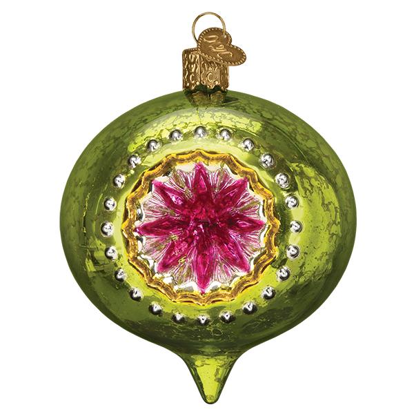 Inspired by the 1940s and 1950s, the Vintage Reflections Collection is made from blown glass and decorated to replicate the mercury finish of traditional Victorian ornaments. Limelight Flare Reflection with radiating indents and bright colors captures the nostalgic reflections of the seasonal spirit.