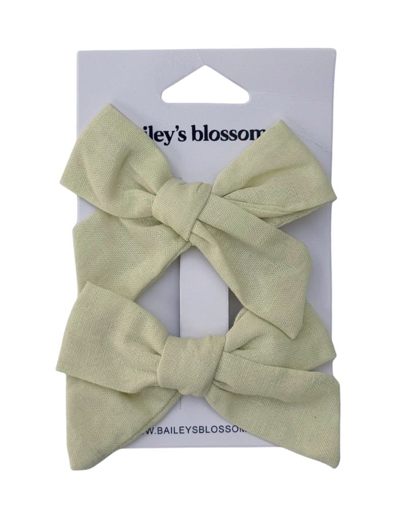 Soft, sweet, and beautifully timeless! The Piggie Set Hair Clips in Cream are the perfect neutral accessory to match any outfit. Made from a soft linen-cotton blend, these bows are securely attached to alligator clips for a comfy, no-slip hold. Whether styled with pigtails, ponytails, or worn as a dainty accent, these clips bring a classic and versatile touch to your little one’s look.