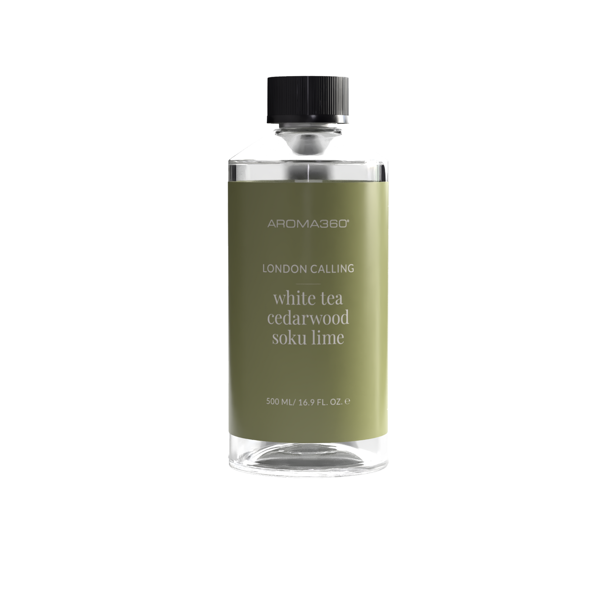 Awaken with the crisp scent of Soku lime, lemon citrus, cedar wood, amber musk, white tea bloom, enchanting rose, and layers of deep peony.