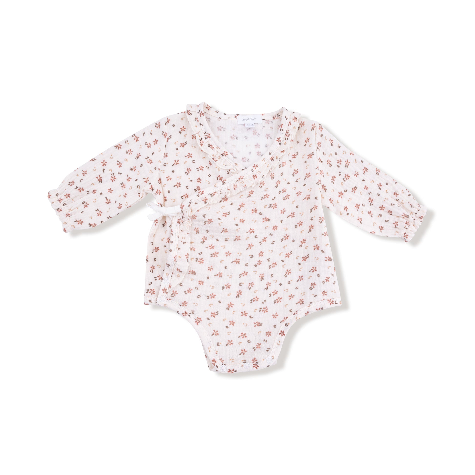 Wrap your little one in gentle comfort and timeless charm with our Long Sleeve Kimono Bodysuit. Made from breathable organic cotton muslin, this bodysuit features delicate ruffles and stretchy elastic cuffs for a cozy fit that moves with baby. Perfect for layering or wearing alone on crisp fall and winter days.