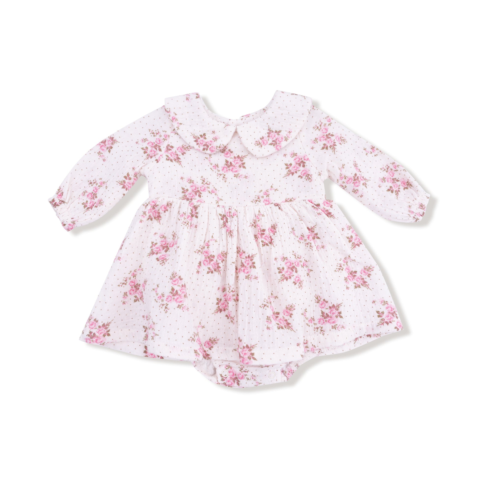 A timeless favorite with a modern twist! Our Long Sleeve Peter Pan Collar Bubble with Skirt is made from soft, breathable organic cotton muslin and features a sweet Peter Pan collar for a touch of vintage charm. Paired with a gathered skirt for extra style and movement, this darling duo is perfect for special outings or everyday cuddles.