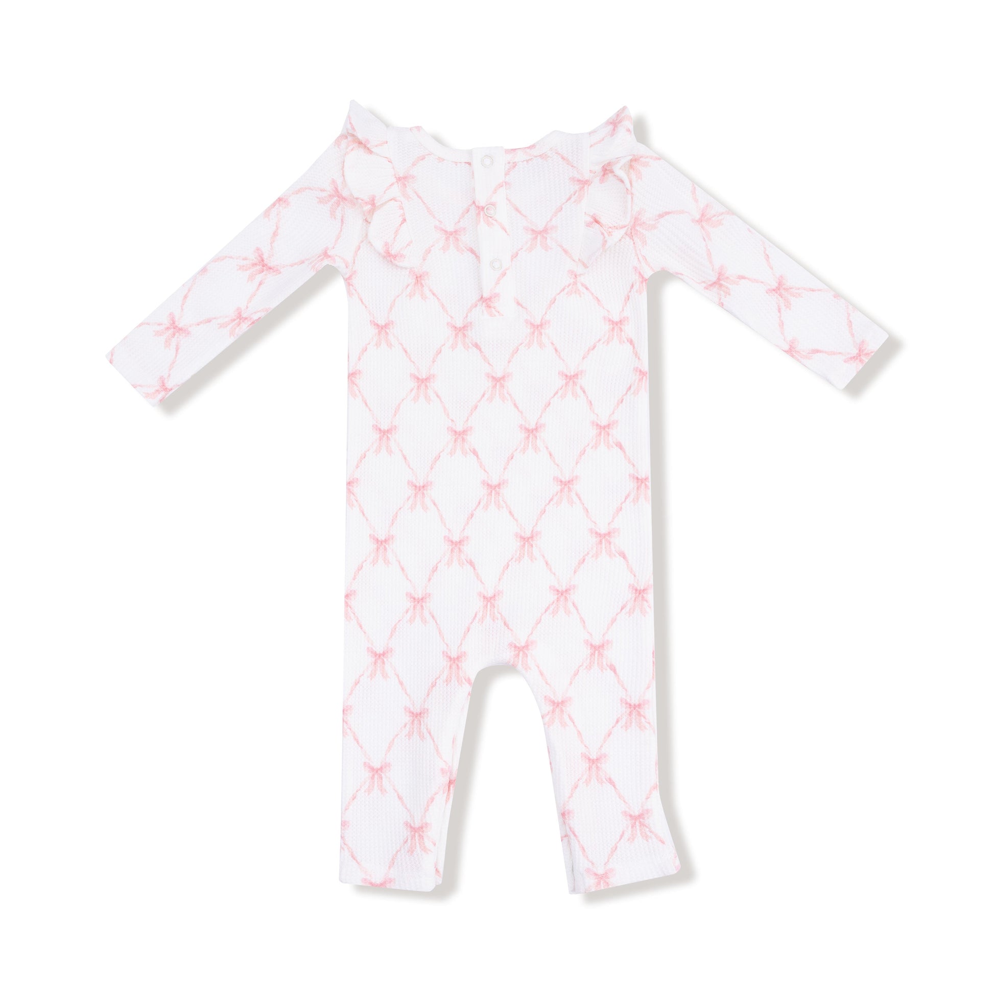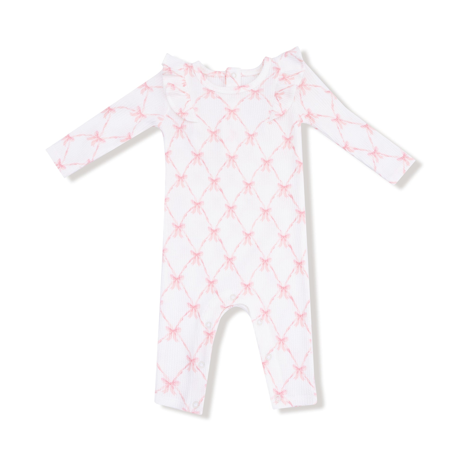 Snuggle season just got sweeter! Our Long Sleeve Ruffle Romper is made from soft, textured waffle knit fabric that’s perfect for chilly days and cozy cuddles. With delicate ruffle details and long sleeves for extra warmth, this one-piece is as cute as it is comfy perfect for playdates, naptime, and everything in between.