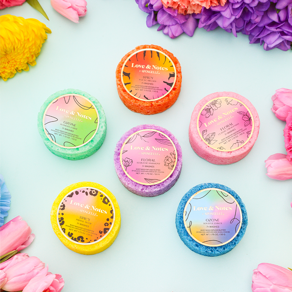 The Love & Notes Spongette Assorted Pack is equal parts bath sponge and body buffer in a compact, travel-friendly size. Accepted on all airlines, nothing to spill, nothing to break, and everything you need for soft and youthful skin. The assorted pack includes all six body buffers with a mix of floral, ozone, and spicy notes. Embark on a harmonious experience of relaxation, exfoliation, and reinvigoration with each fragrance starting you off on a melodic journey.
