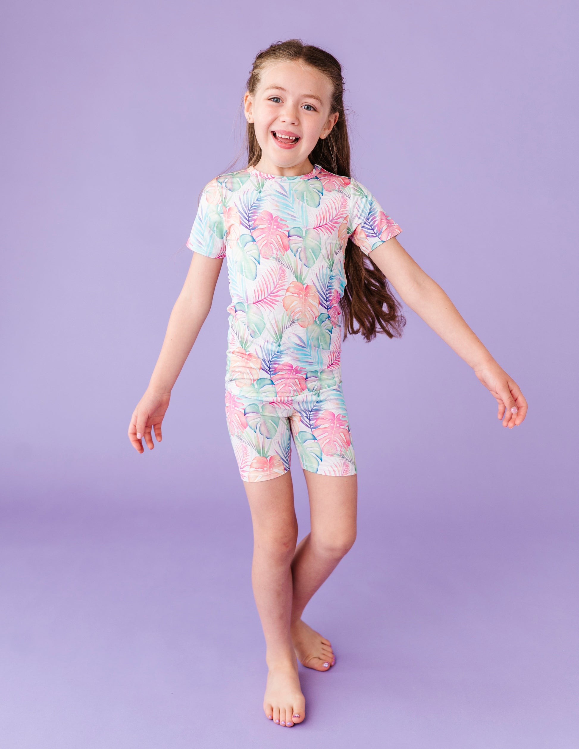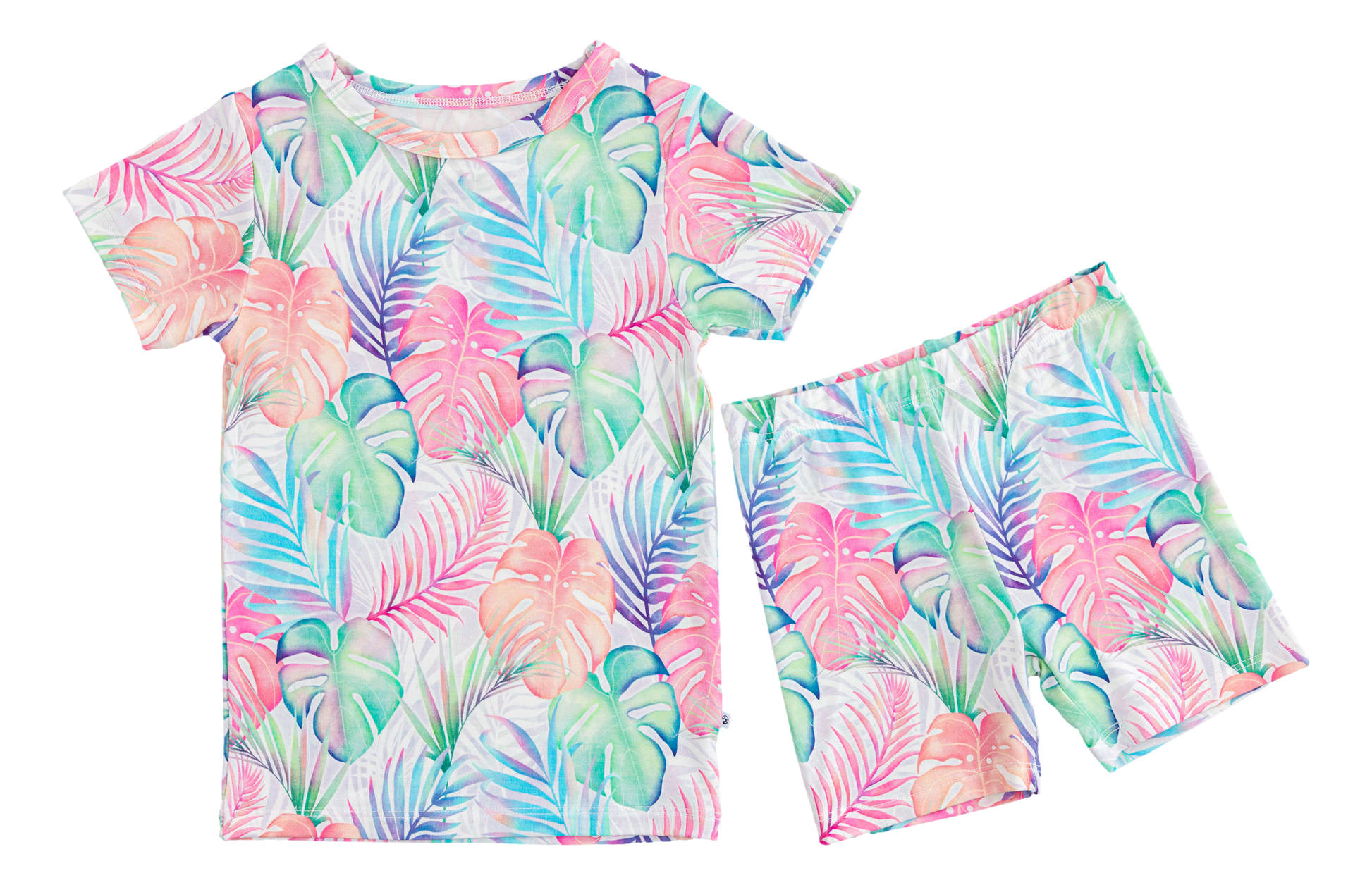 Tropical dreams await! These pajamas are the perfect blend of comfort and style, made from our signature buttery-soft bamboo viscose blend that’s gentle on even the most sensitive skin. With a vibrant leaf print and a snug, breathable fit, they’ll be your little one’s go-to for sweet summer slumbers (and playful mornings too!).