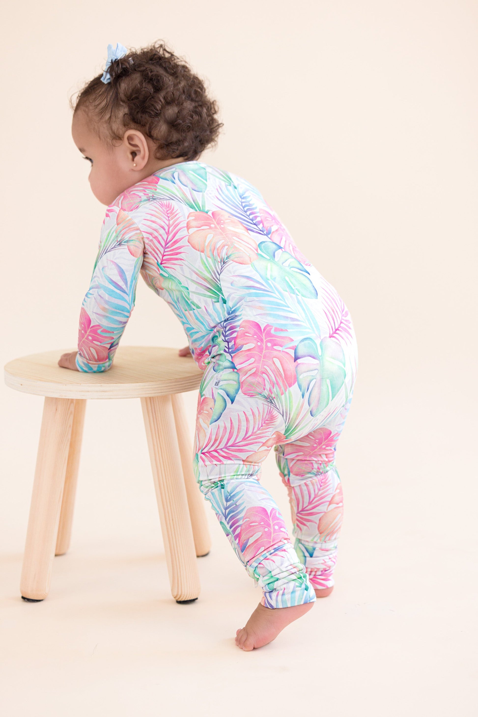 Why choose between a romper and a footie when you can have both in one adorable piece? This versatile romper converts into a footie with fold-over feet cuffs, giving you all the flexibility you need! Made from irresistibly soft bamboo viscose with a hint of spandex, this piece combines cuteness and comfort, and our 2-way zipper makes diaper changes effortless.