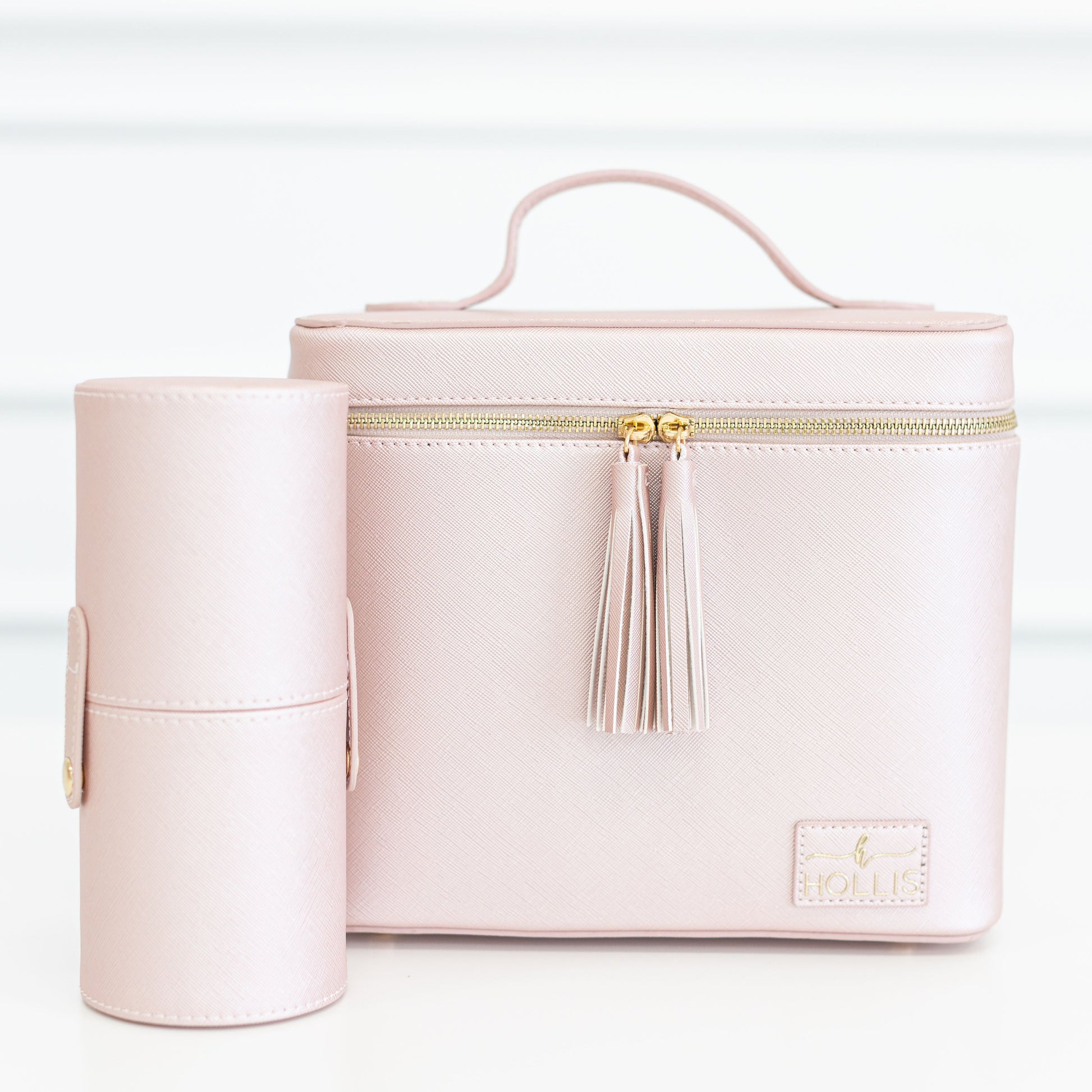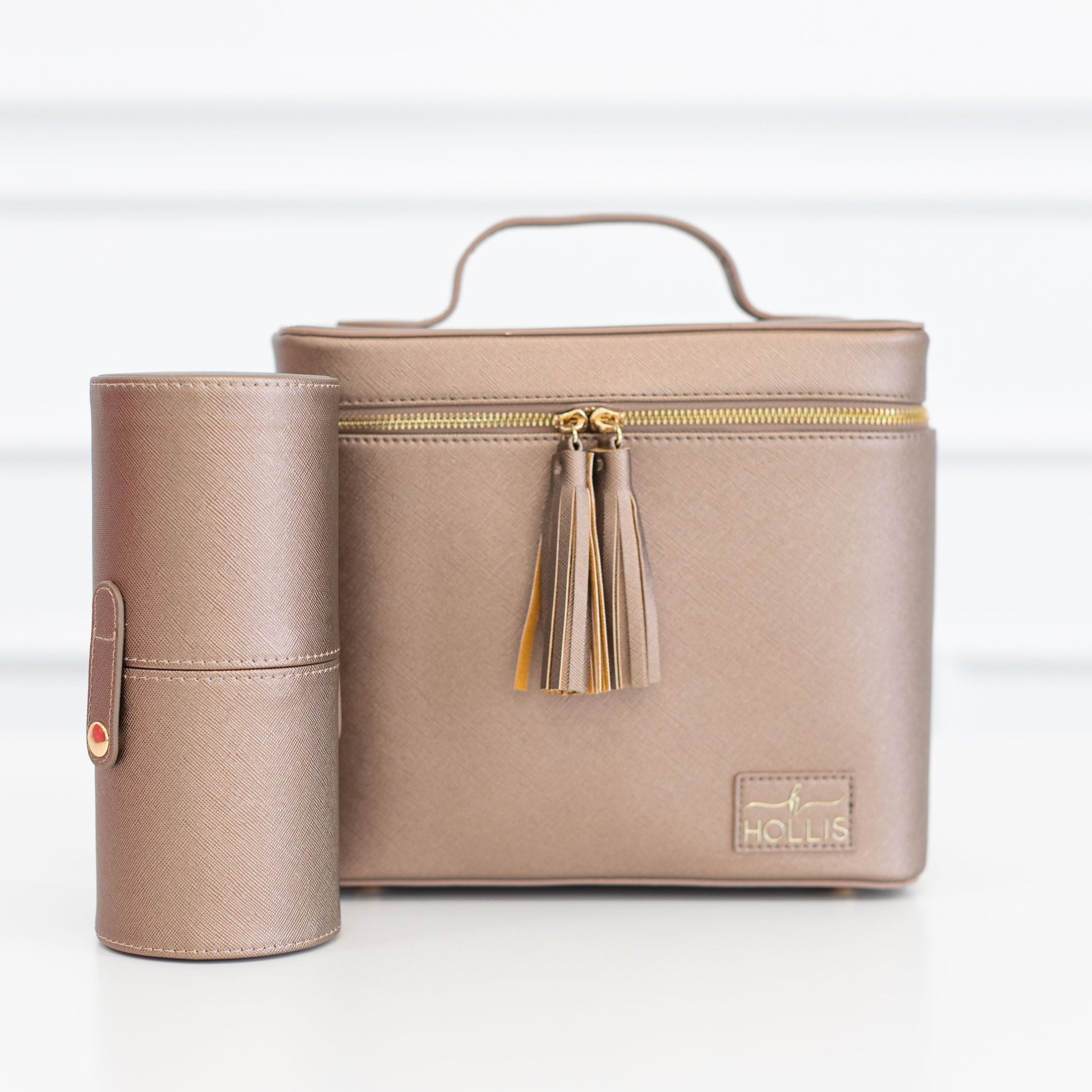 Elevate your travel game with our best-selling makeup bag, Lux. We've listened to your requests and delivered a bigger and better leopard design. This bag is a true organizer's dream, with dedicated compartments for all your makeup essentials. The one-of-a-kind brush holders, included with the bag, keep your brushes secure and easily accessible. From foundations to mascaras, eyebrow pencils, and more, Lux has a place for everything. It even accommodates the largest full-size eyeshadow palettes. The top zipper compartment is perfect for storing jewelry or other small items. Crafted with unmatched quality, this bag is sure to turn heads wherever you go. Please note that due to the one-of-a-kind nature of our products, the exact color patterns may vary slightly from the image shown. Upgrade your travel experience with Lux, measuring at 10 x 9 x 6, and enjoy a makeup bag that combines style, functionality, and unmatched quality.