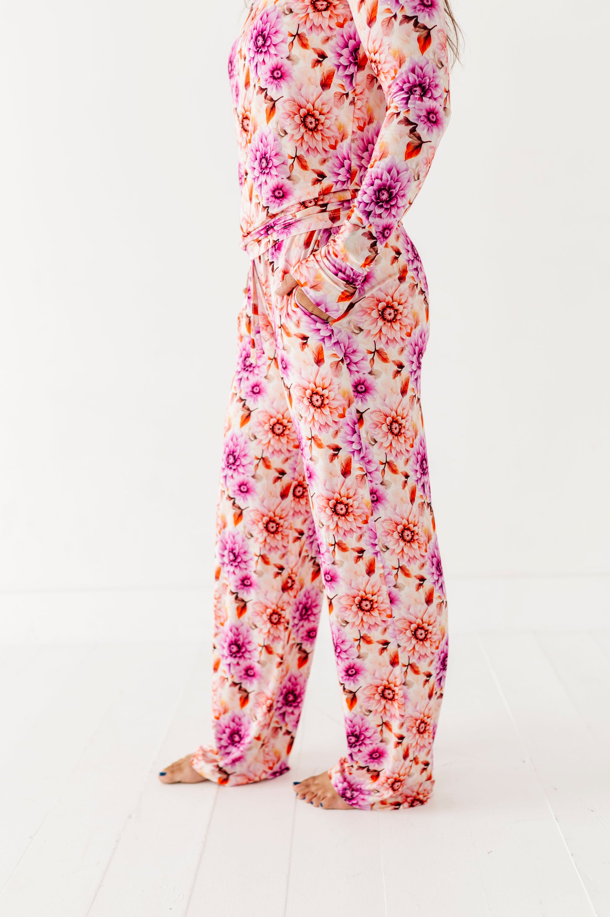 Unwind in fall’s dreamiest florals! This ultra-soft lounge set is designed for comfort and style, featuring a romantic watercolor bloom print in warm autumn tones. Whether you're sipping coffee, winding down for the evening, or enjoying a cozy weekend at home, this breathable bamboo blend offers the perfect mix of stretch, softness, and elegance—because lounging should always feel this lovely.