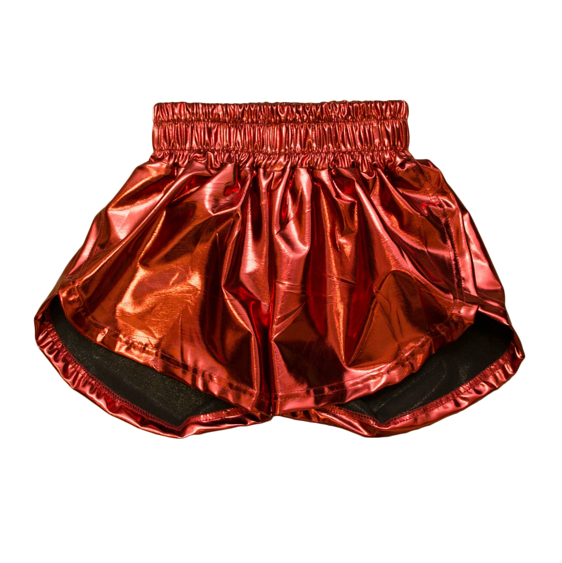 Bring some fun and flair to your outfit with these Maroon Metallic Shorts. Their shiny maroon hue adds a vibrant pop, perfect for parties or casual days when you want to stand out. Lightweight and comfy, they make every move feel lively and stylish. Get ready to shine and play!