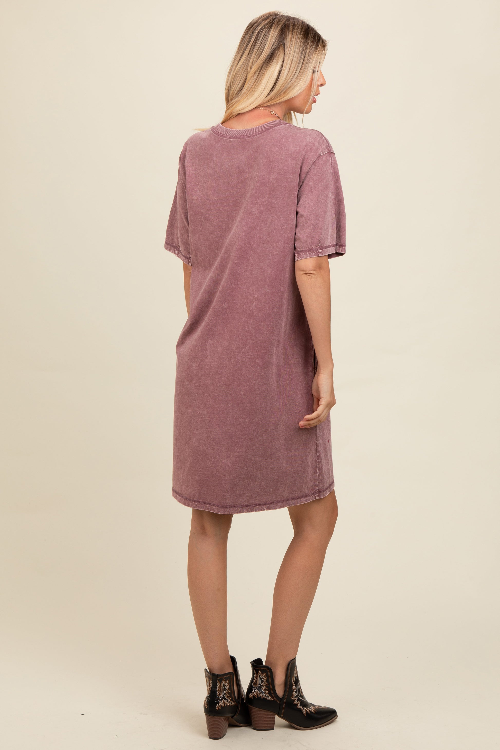 Mauve Rhinestone Mineral Washed T-Shirt Dress