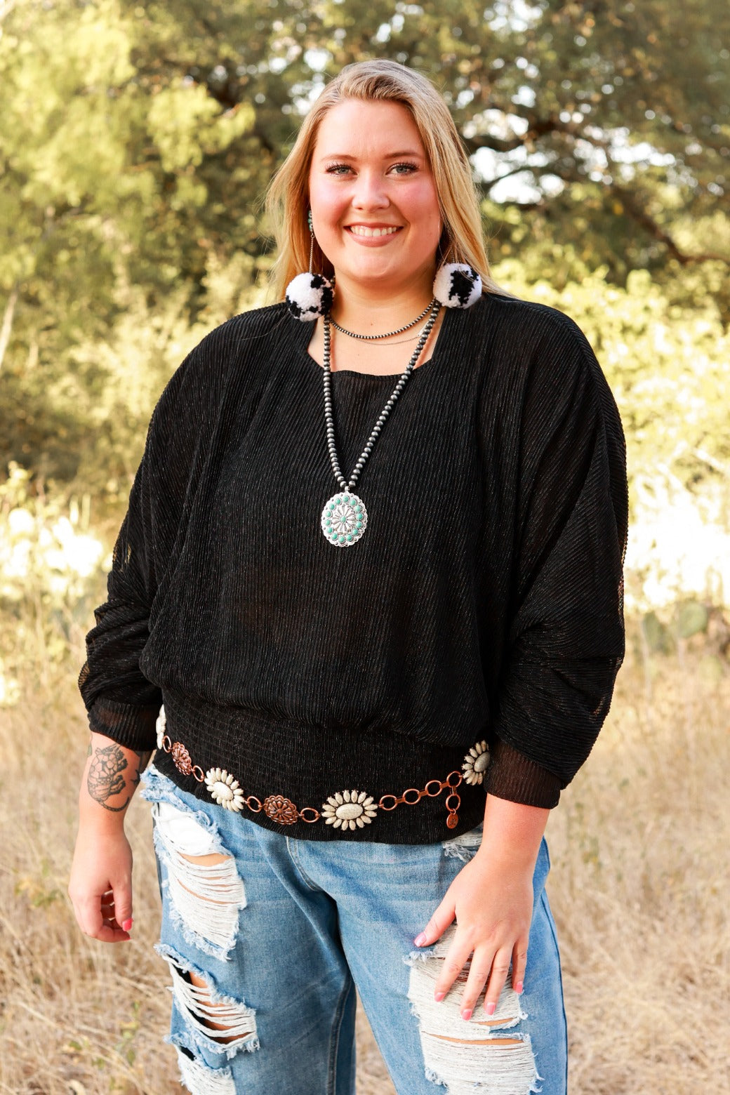 This blouse is a dream. The long sleeve top is perfect for wear to work, holidays, or just plain old dressing up your favorite pair of jeans!