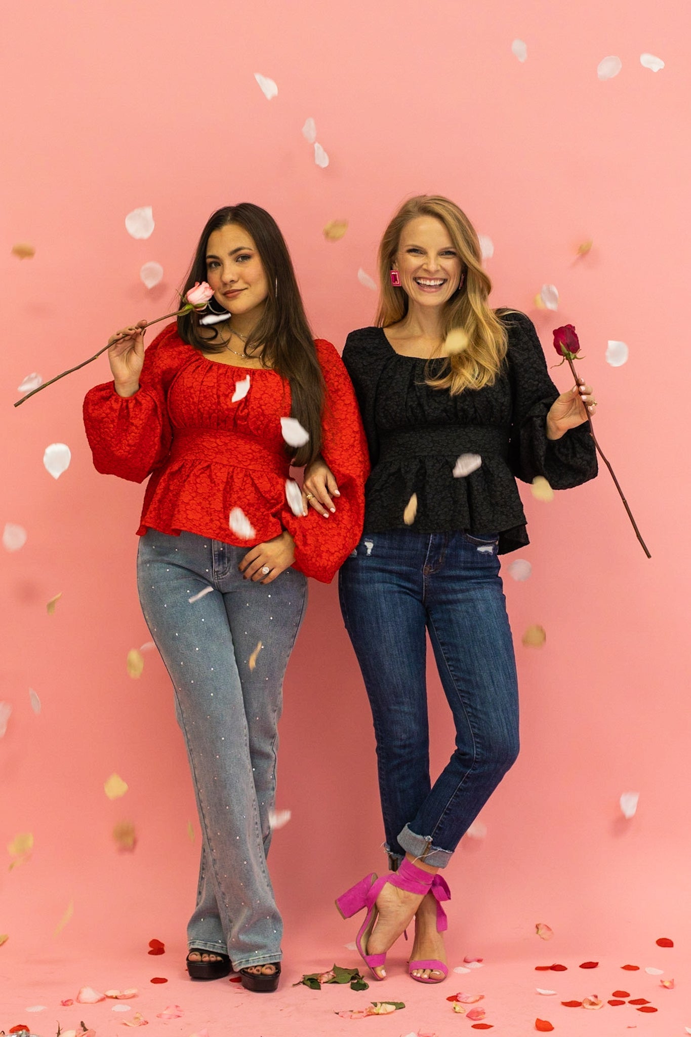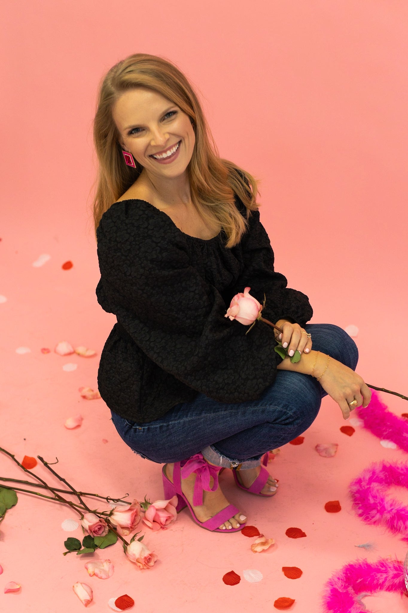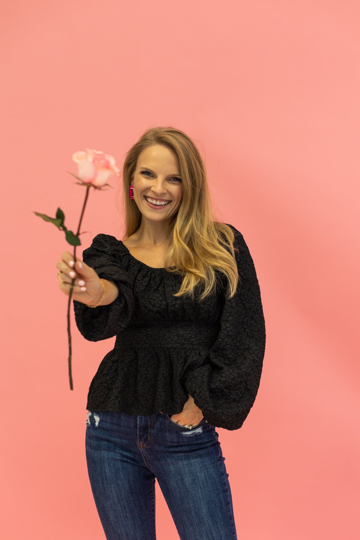 Elevate your Valentine's Day style with our Midnight Romance Jacquard Peasant Blouse, a captivating blend of romance and sophistication. This versatile piece can be worn either on or off the shoulder, allowing you to customize your look to suit the occasion. The rich crimson hue and intricate jacquard pattern make this blouse a timeless addition to your wardrobe, perfect for expressing your passion and flair during special moments. Embrace the allure of Midnight Romance and make a statement with this chic and adaptable peasant blouse.