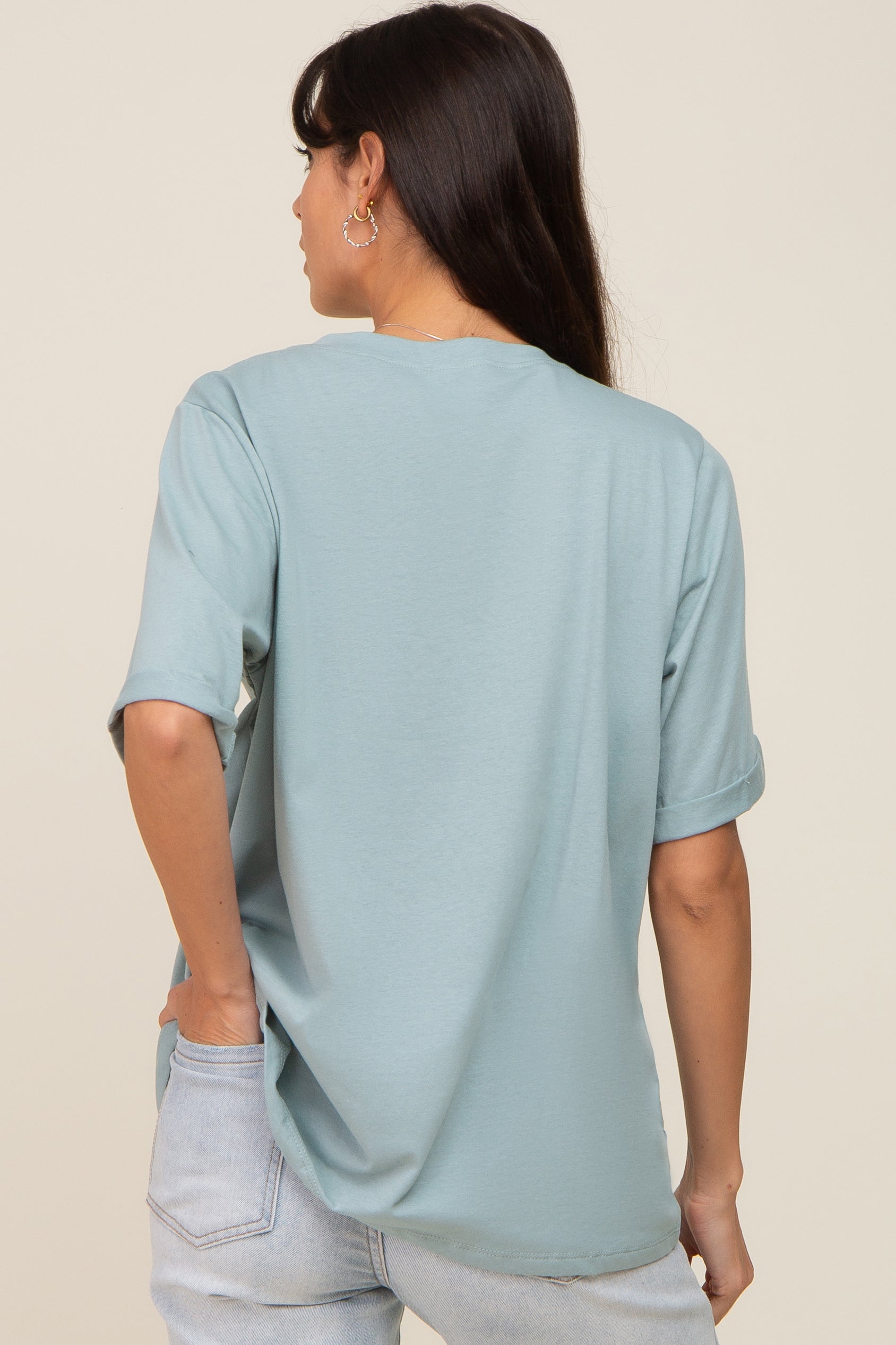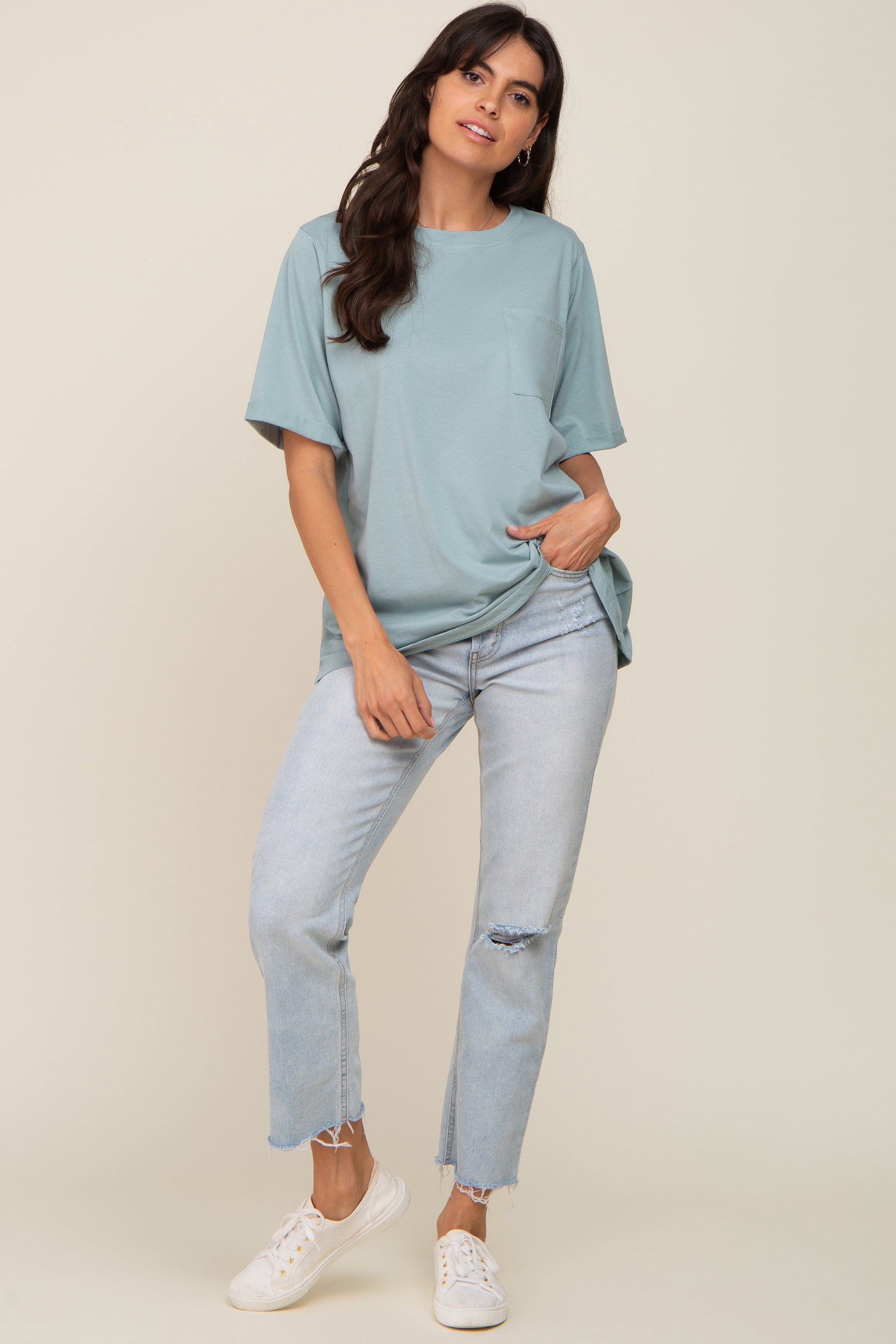 Mint Green Oversized Pocket Front Short Sleeve Top