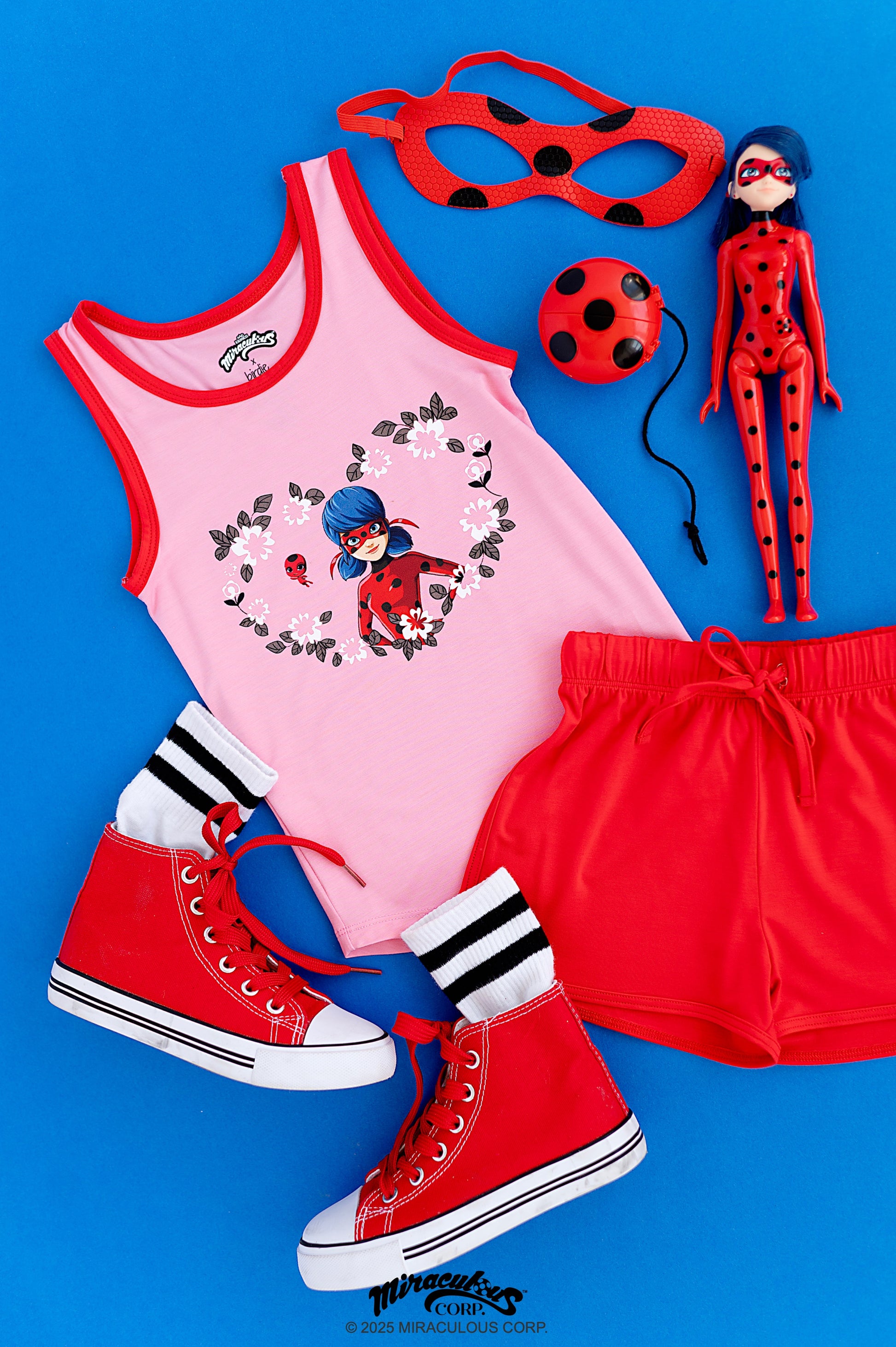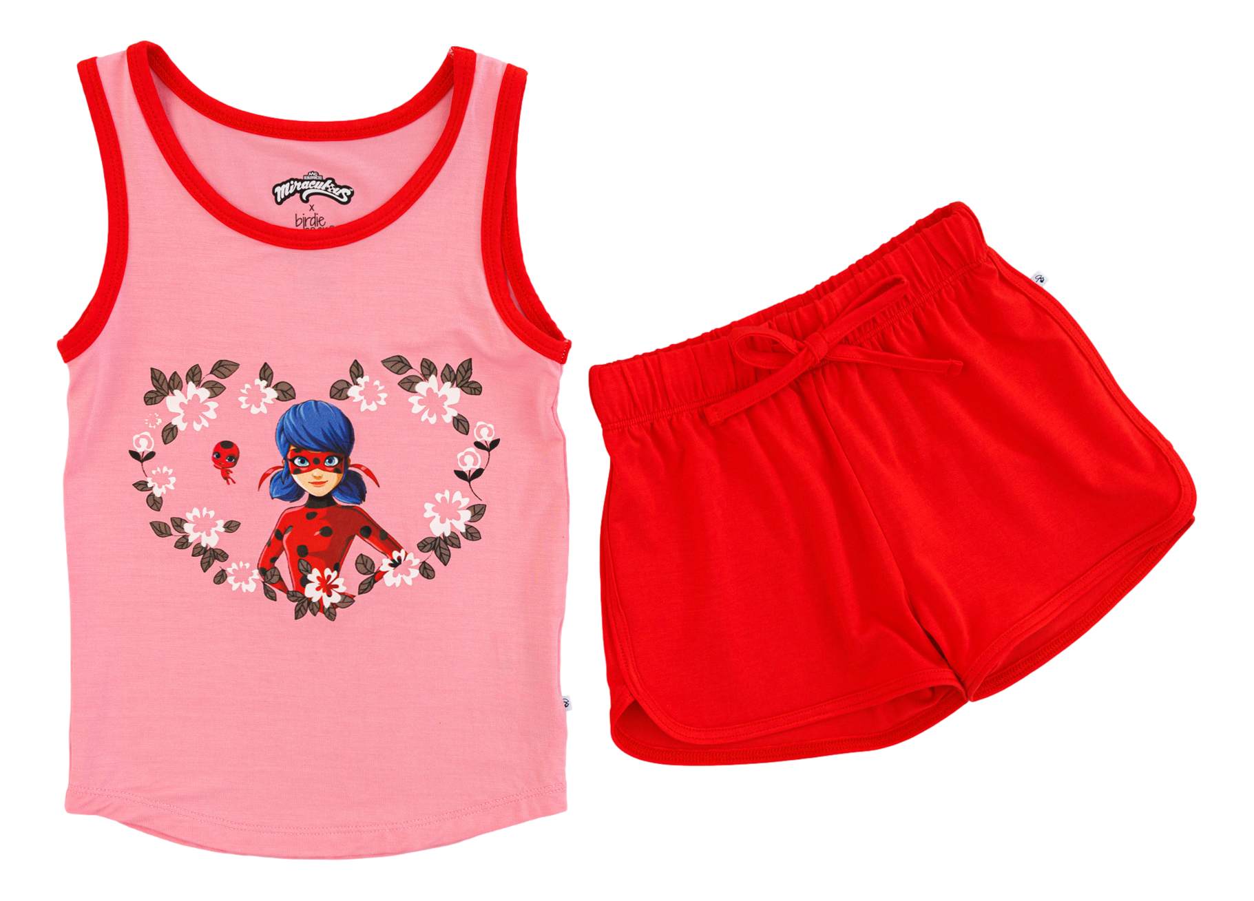 Let your little Miraculer shine in this Miraculous™ Sweet Trend tank & shorts set! Designed for fans who adore Ladybug, this playful outfit features a heart-shaped floral graphic starring their favorite Parisian hero. With sporty red shorts and a lightweight bamboo viscose blend, it’s perfect for warm days, bold adventures, and everyday hero play. A must-have look for your little one to show off their Miraculous style all summer long!