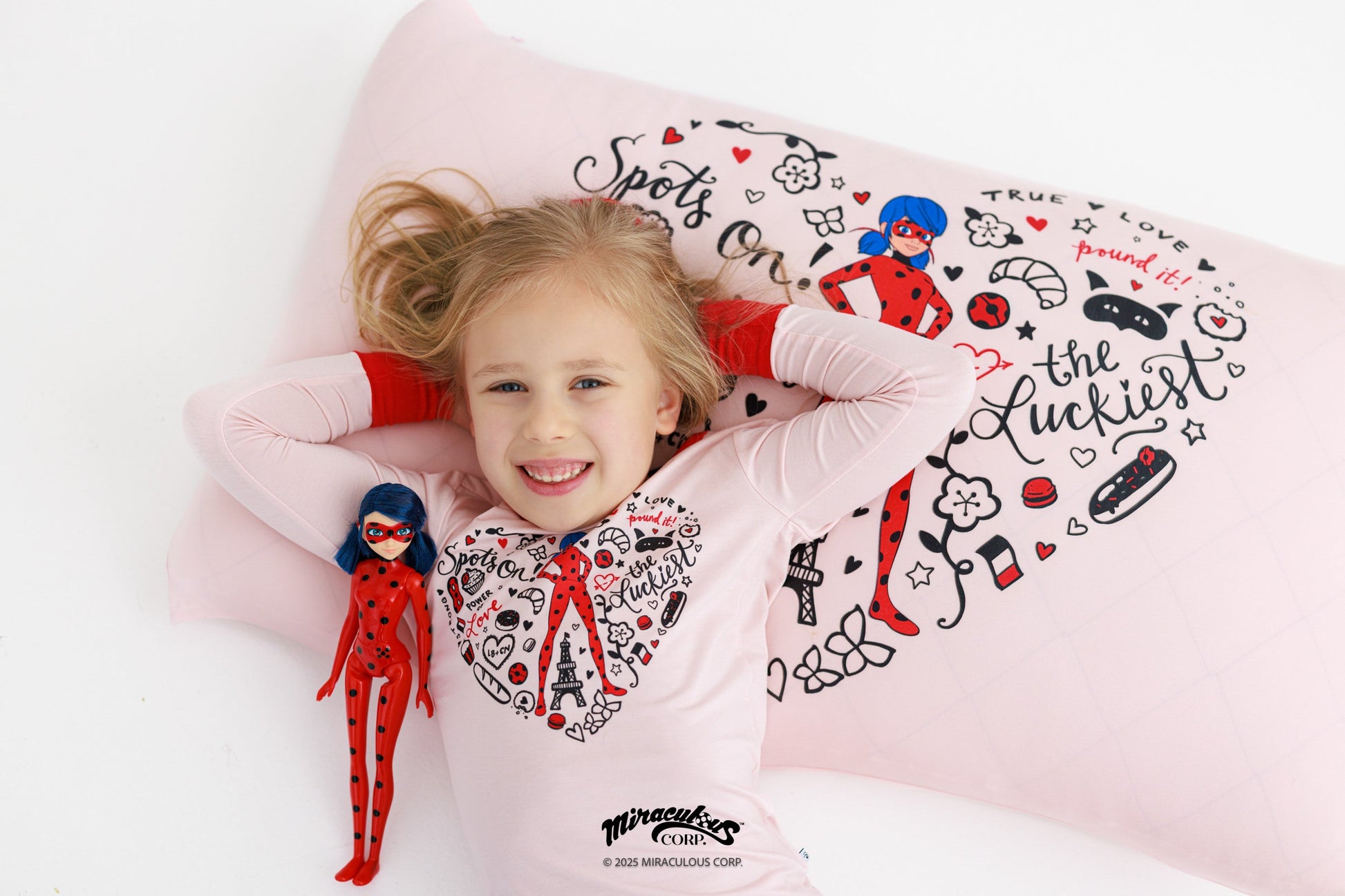 Iconic Ladybug graphic paired with a Paris-inspired doodle print