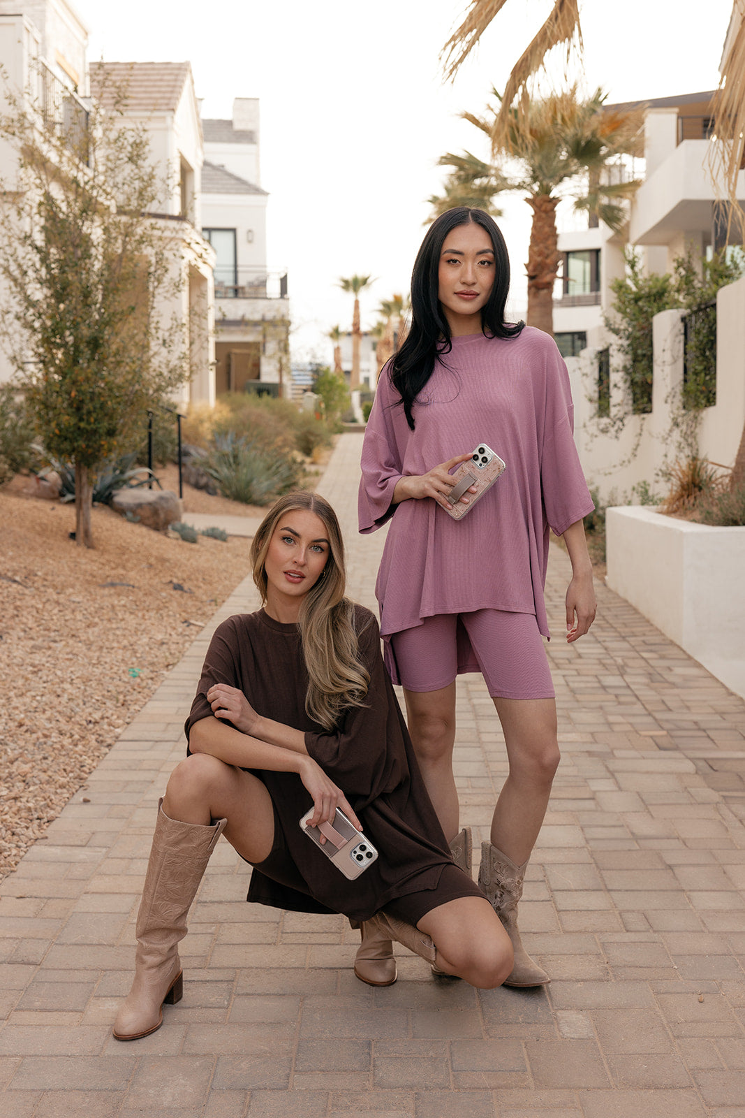Beige, mauve, greyish brown and cream color block