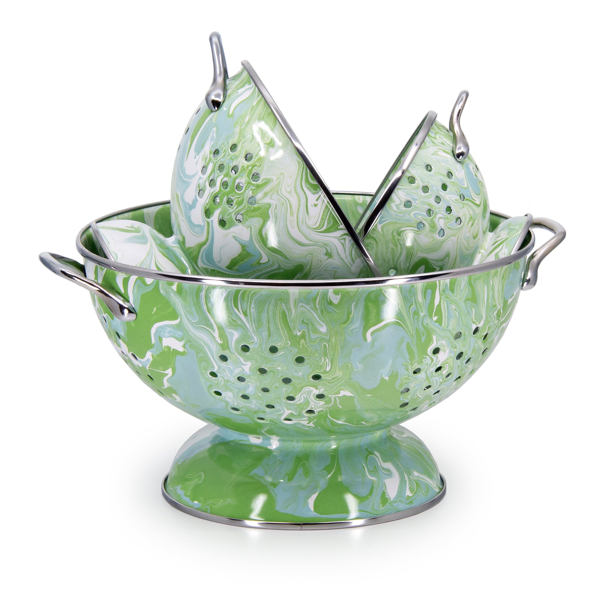Strain with style using the Modern Monet Set of Colanders! This delightful trio of enamelware colanders features vibrant designs that brighten up any kitchen task. Perfect for rinsing fruits, vegetables, or pasta, they combine functionality with artistic flair, making cooking feel extra special!