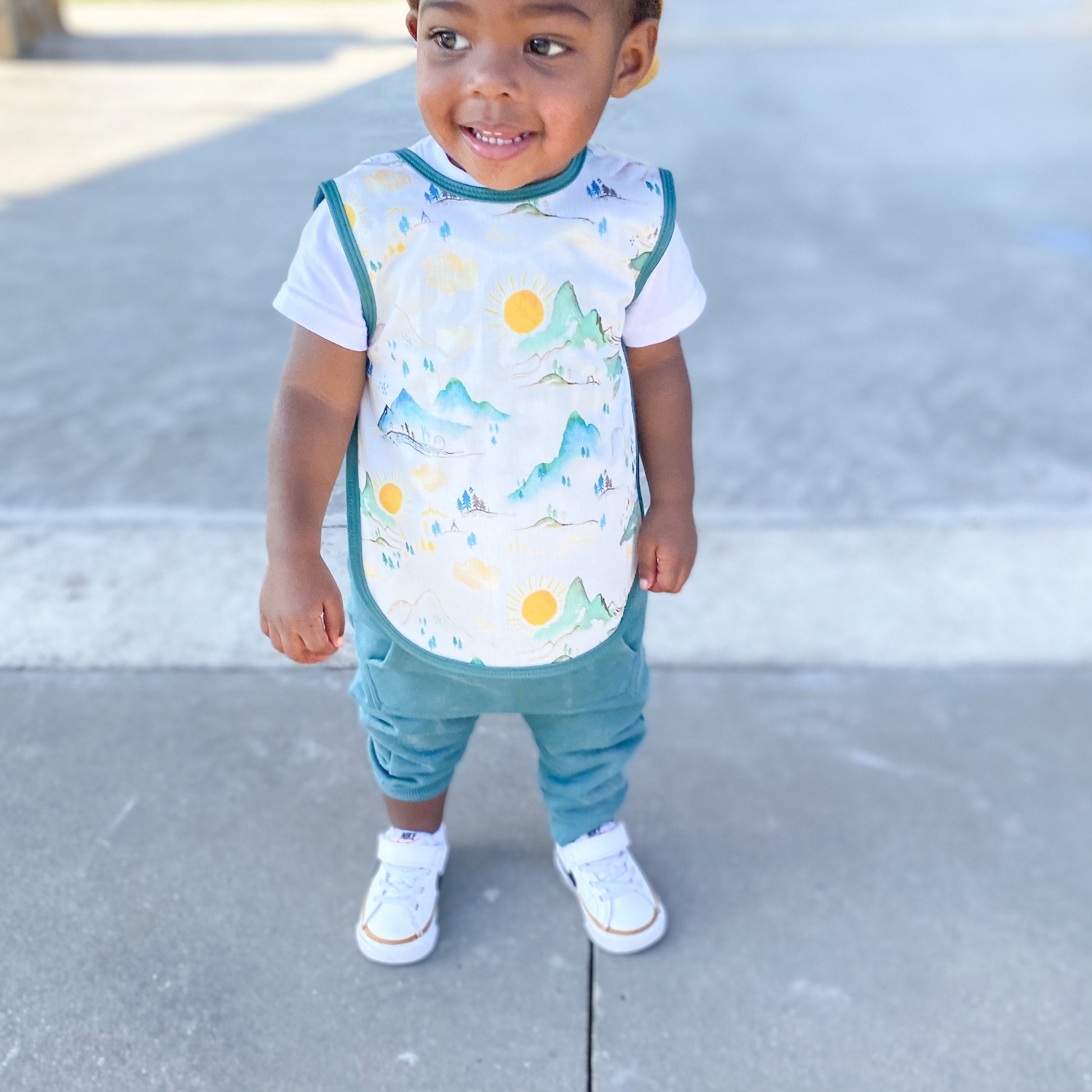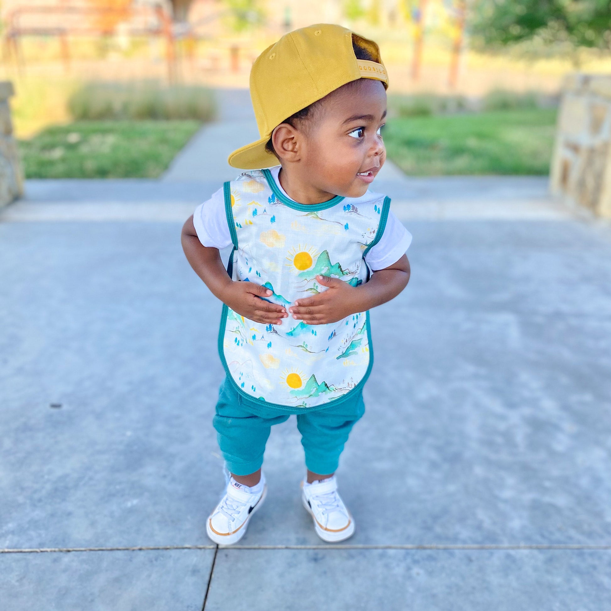 This best-selling “Bapron”, also known as a bib-apron hybrid, full-coverage bib, smock, or apron, is designed for comfort and safety. Because of their comfortable, secure-fitting horizontal ties and their full-coverage design, Baprons are the perfect companion for mealtime, art, and sensory play!